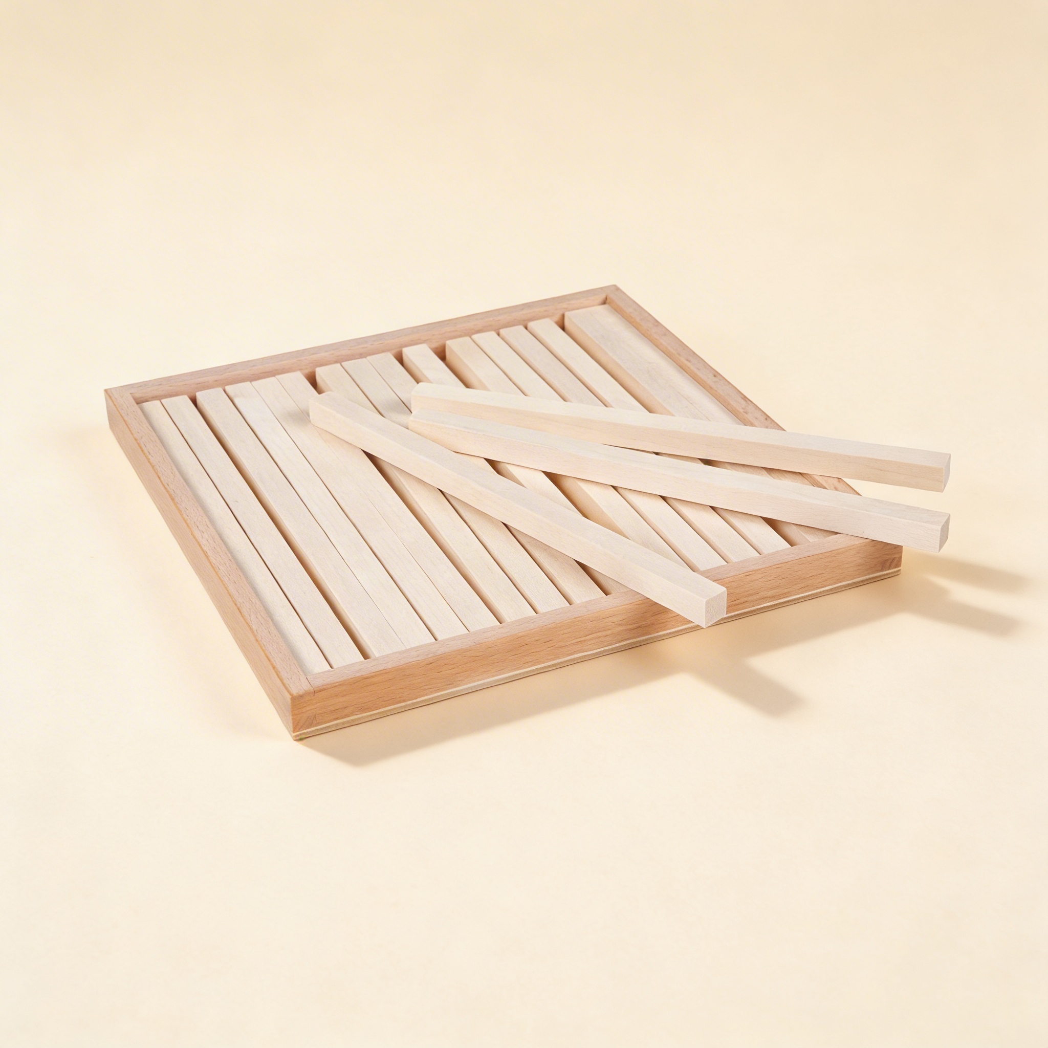 Hladké dřevo poskytuje smyslovou zpětnou vazbu, zatímco dítě zachází s materiálem, posiluje spojení mezi hmatem a vizuálním vnímáním podstatným pro Montessori vzdělávání.