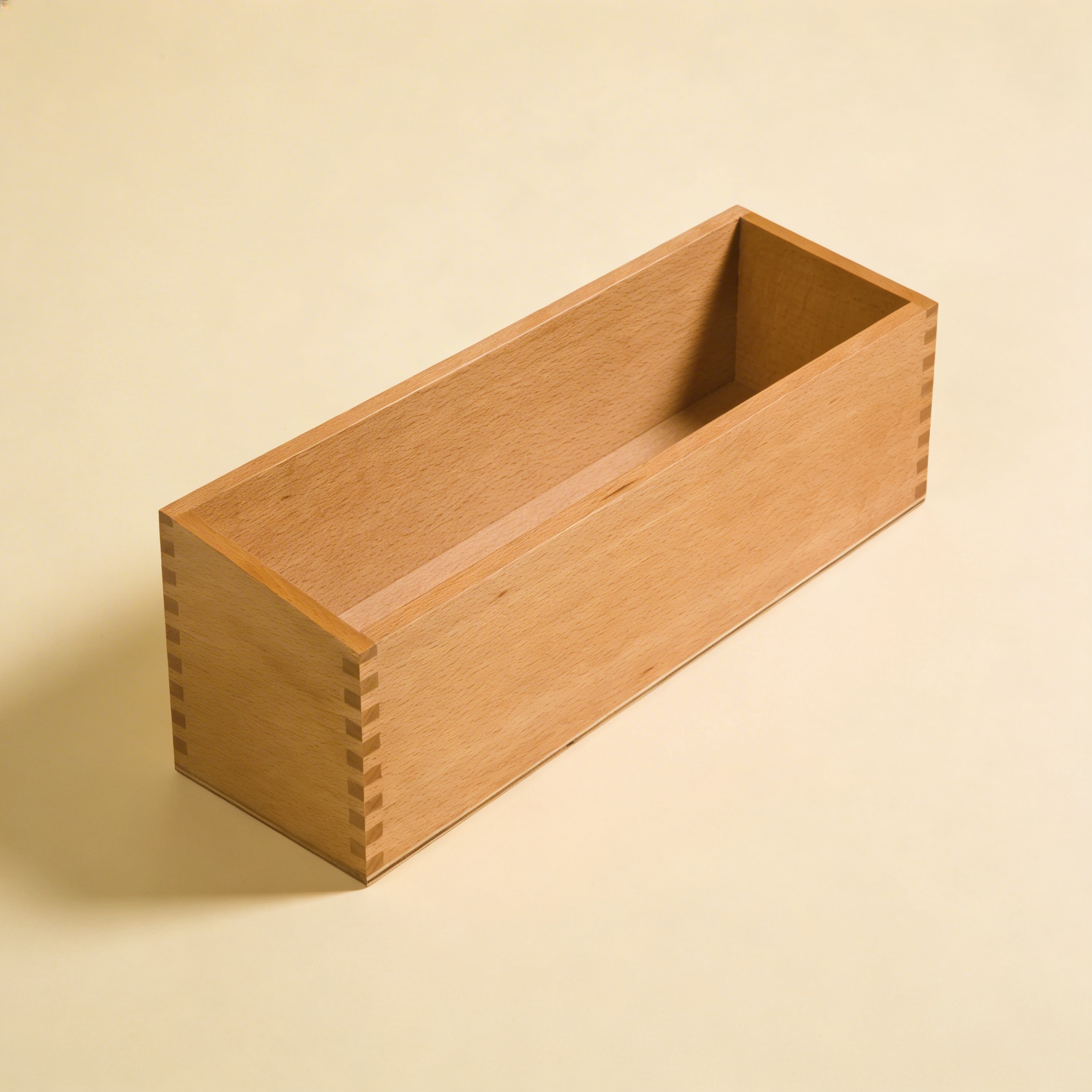 Diese wunderschön gefertigte Holz-Aufbewahrungsbox mit präziser Schwalbenschwanzverbindung ist darauf ausgelegt, doppelte Sets von Sandpapierbuchstaben zu beherbergen und zu organisieren. Das offene Design ermöglicht Kindern einfachen Zugang, während das glatte Innere die empfindlichen Sandpapieroberflächen schützt und die Entwicklung taktiler Unterscheidung und Buchstabenerkennung in der vorbereiteten Umgebung unterstützt.