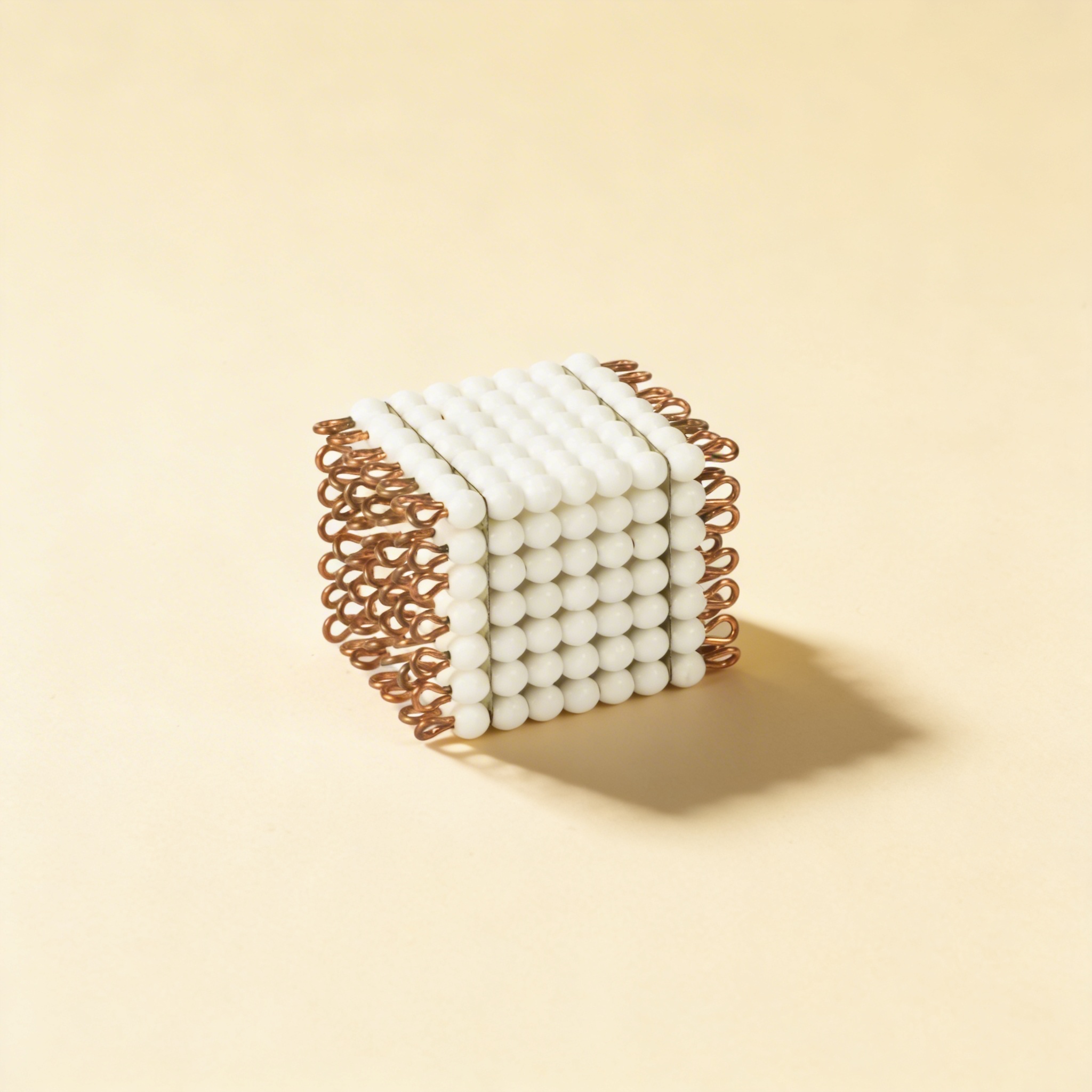 Weiße Glasperlen bieten visuelle Klarheit und Einheitlichkeit, sodass Kinder sich auf das mathematische Konzept konzentrieren können, ohne abgelenkt zu werden. Das Gewicht und die Textur der Perlen bieten wichtige sinnliche Rückmeldung, während der Kupferdraht die strukturelle Integrität des Würfels beim Handhaben aufrechterhält.