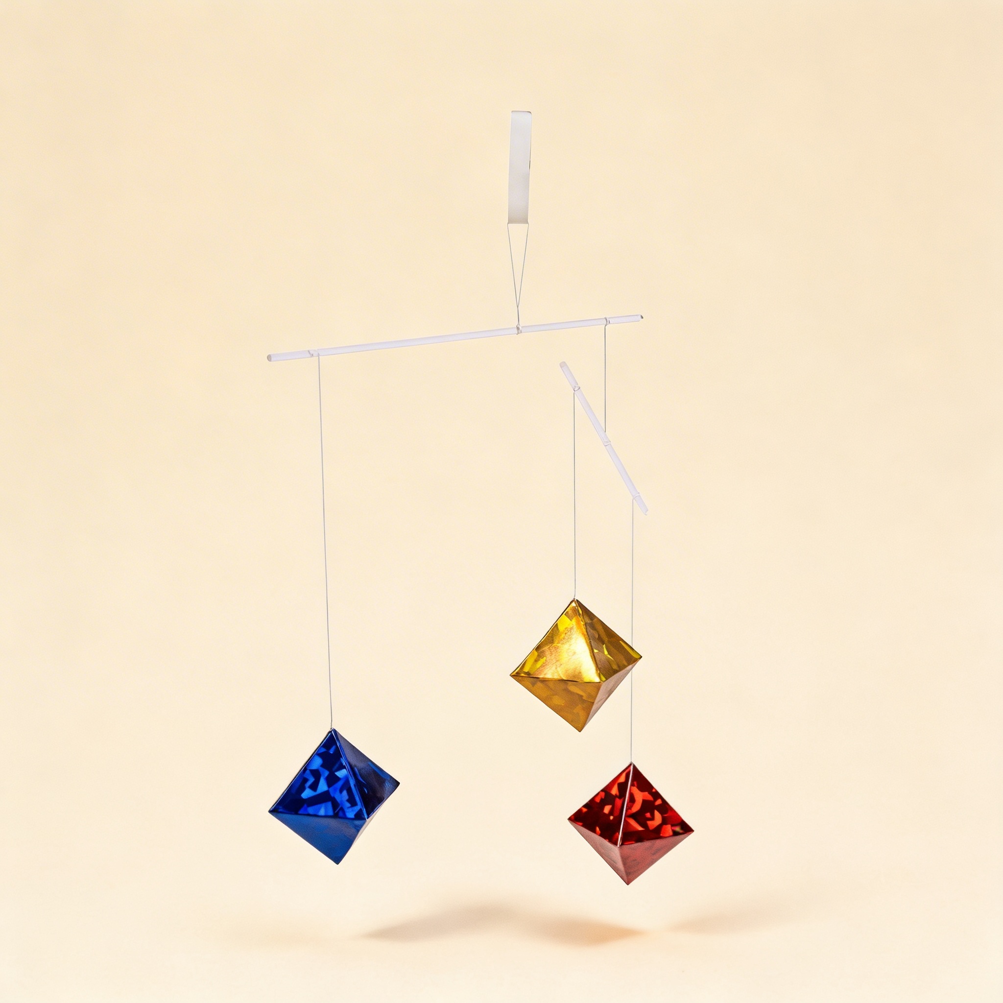 Unser Oktaeder-Mobile verfügt über präzise geschnittene Kristall-Oktaeder, die an einem sorgfältig ausbalancierten Holzrahmen aufgehängt sind, gefertigt nach AMI-Spezifikationen. Die Kristalle werden für ihre Klarheit und lichtbrechenden Eigenschaften ausgewählt, während das Aufhängungssystem sanfte, gleichmäßige Bewegung gewährleistet. Jedes Mobile wird einer Qualitätsprüfung unterzogen, um ordnungsgemäße Balance und Sicherheit für die Verwendung durch Säuglinge zu gewährleisten.
