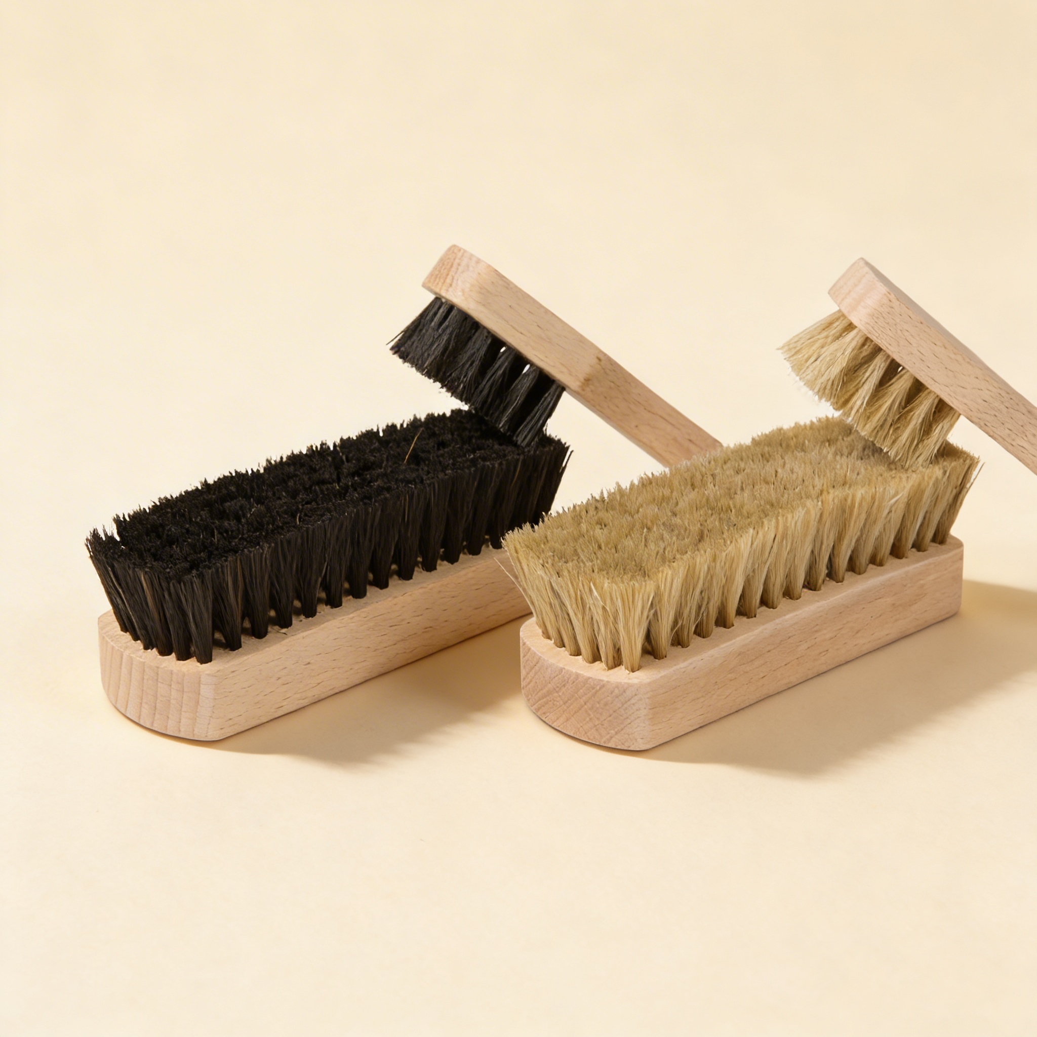 Kombination aus natürlichen und synthetischen Borsten bietet verschiedene Texturen für vollständiges Schuhpflegelernen.