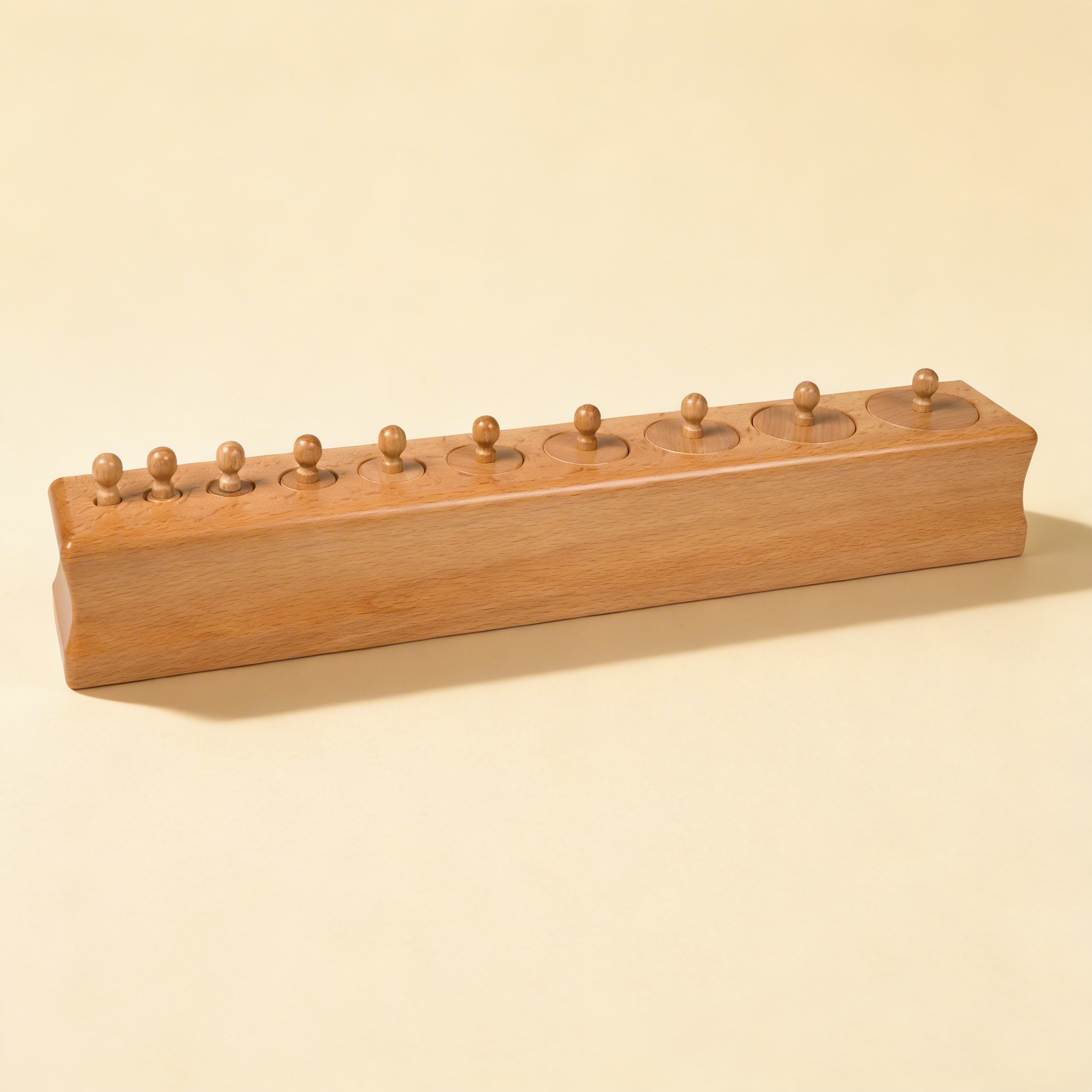Aus massivem Hartholz für Haltbarkeit und präzise Kalibrierung gefertigt, gewährleistet, dass Zylinder perfekt in ihre Öffnungen passen für Jahre des Klassenzimmergebrauchs.