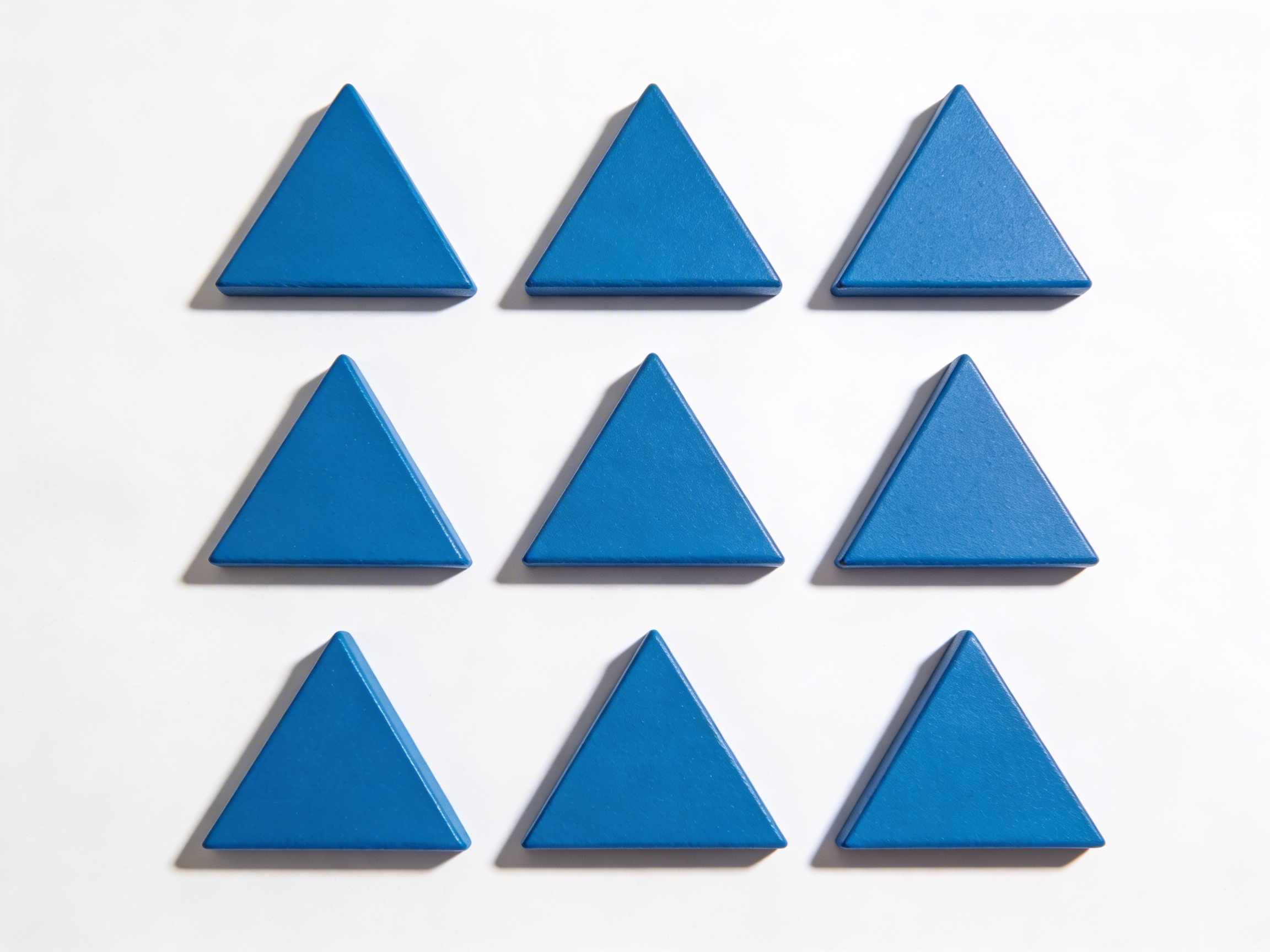 The 12 Identical Blue Triangles Activity Set is a Educational Materials Montessori material designed for children aged 3-6, crafted by Nienhuis Montessori to AMI standards.