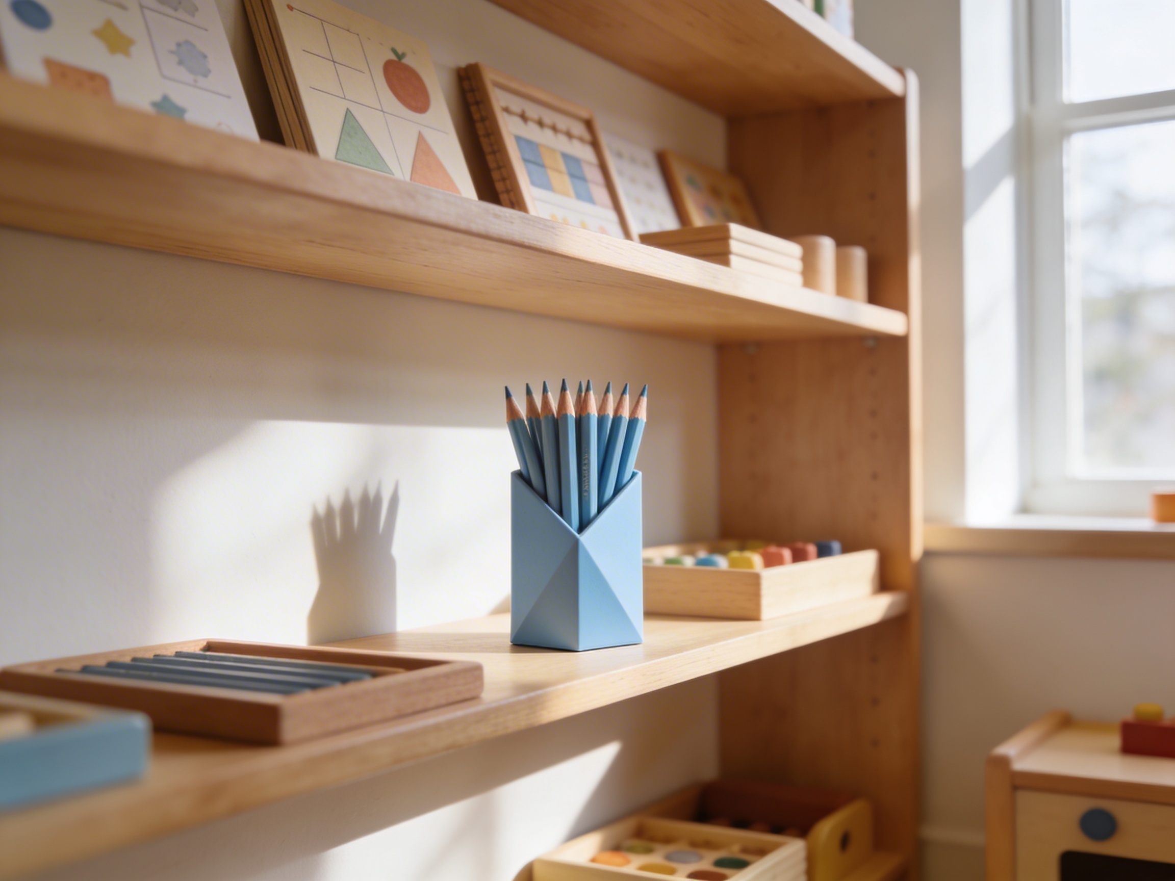 “Store pencils with points facing upward to prevent damage and make selection easier for small hands”