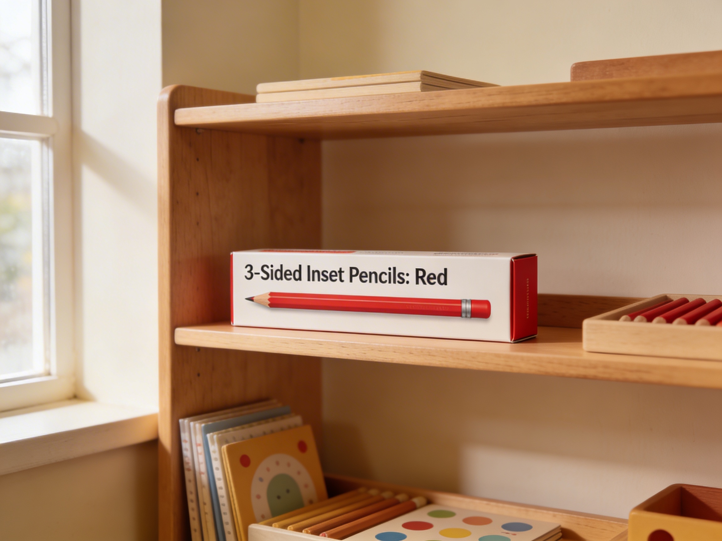 The 3-Sided Inset Pencils: Red is a Educational Materials Montessori material designed for children aged 3-6, crafted by Nienhuis Montessori to AMI standards.