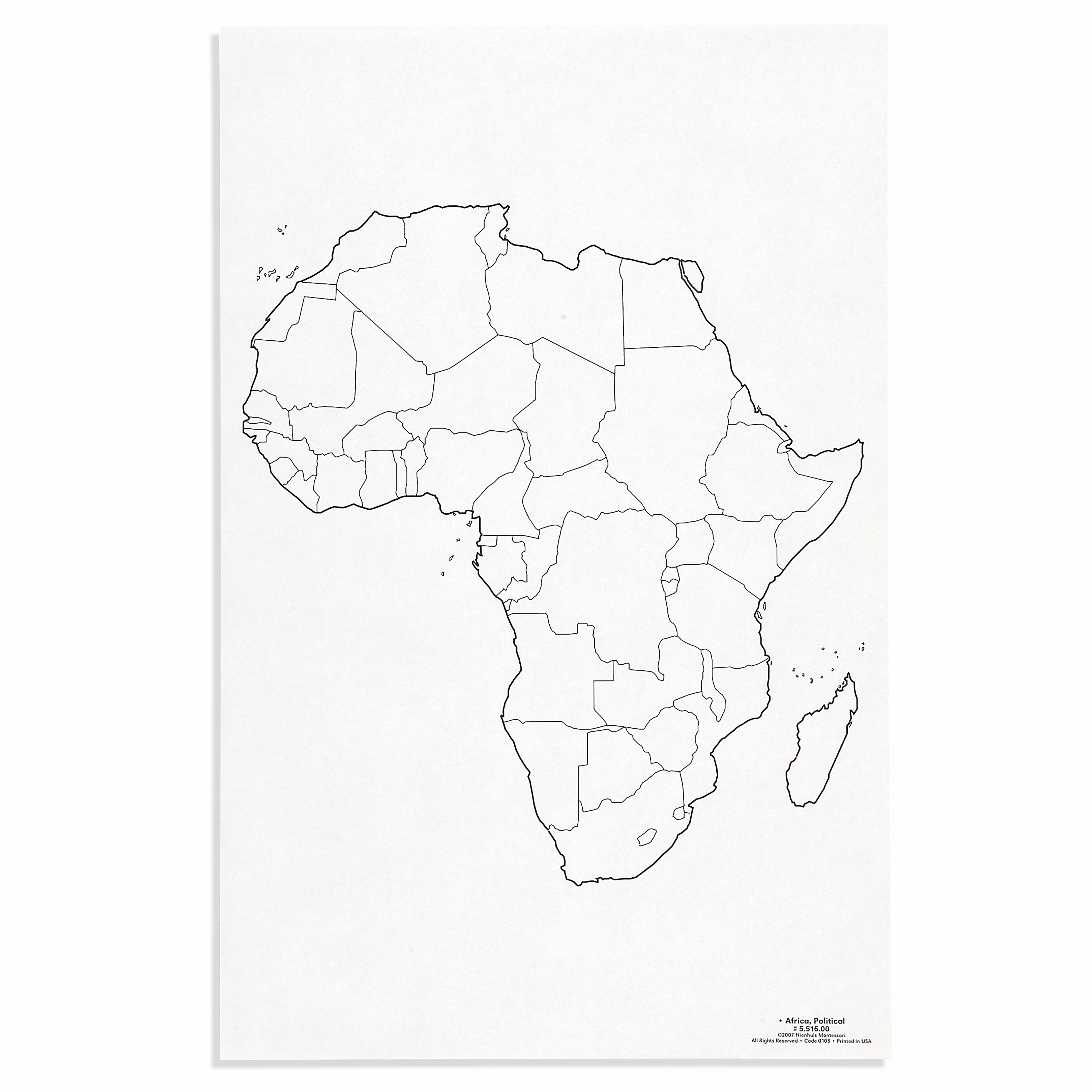 The Africa: Political (50) is a category.geography Montessori material designed for children aged 3-6, crafted by Nienhuis Montessori to AMI standards.