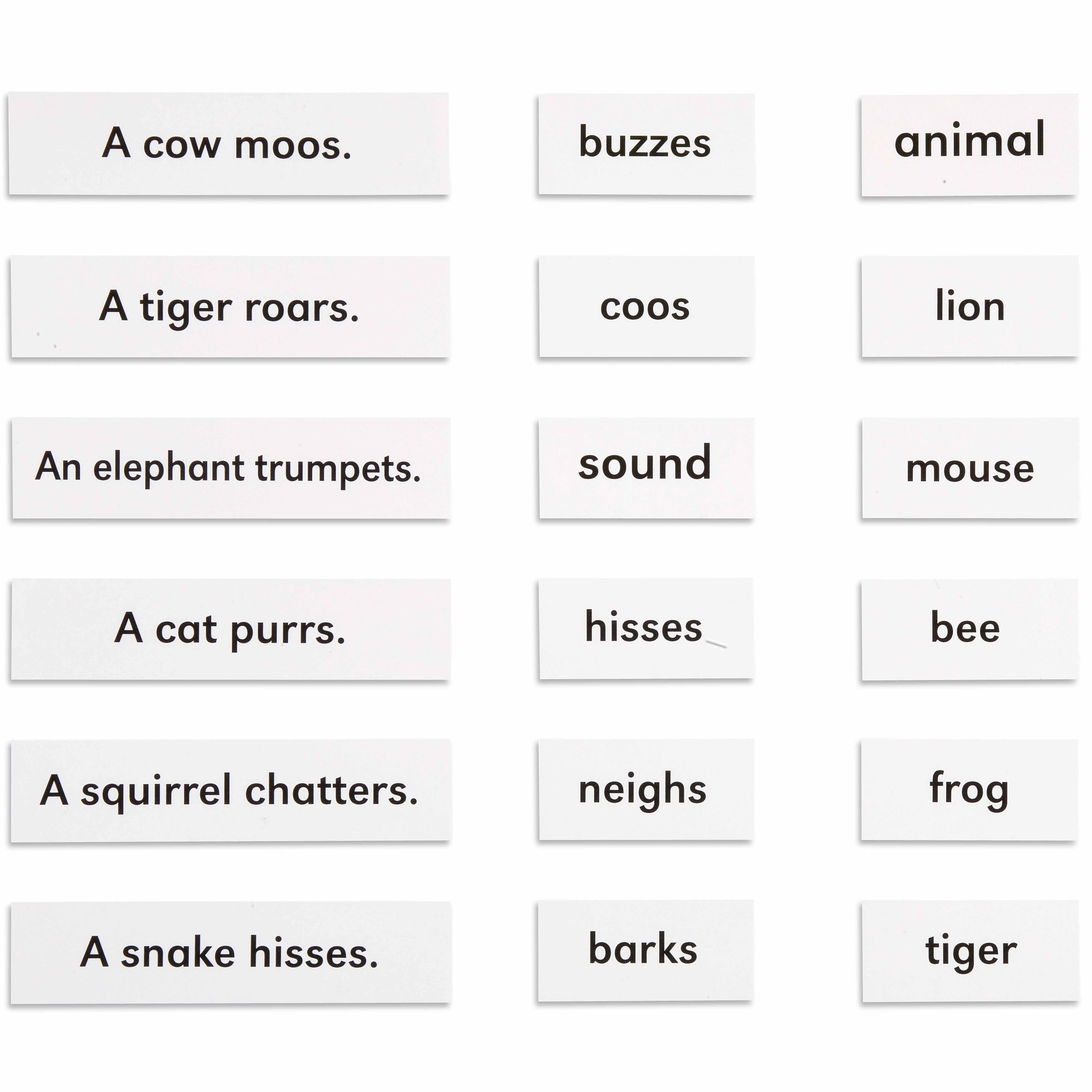 Place the animal name card next to its sentence