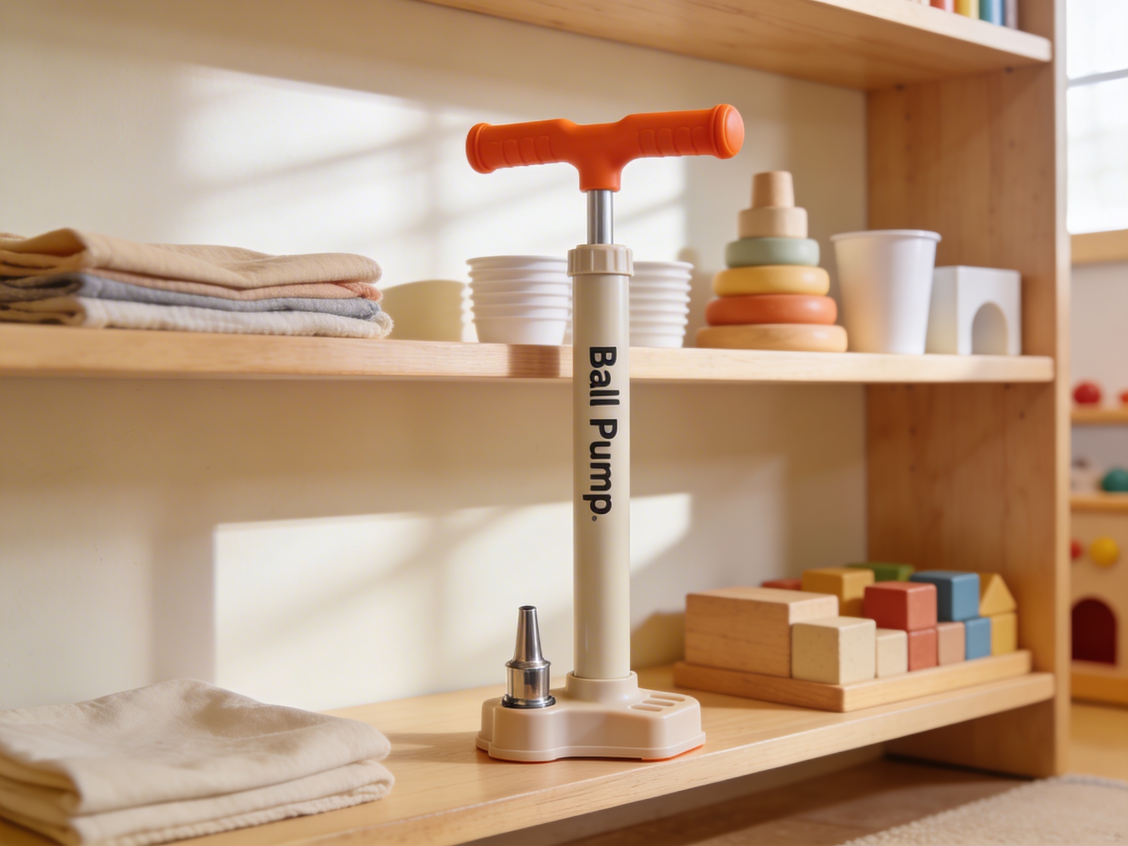 The Ball Pump transforms equipment maintenance into purposeful practical life work that builds physical strength and scientific understanding. Through its transparent chamber, the pump reveals the mechanical process of air compression, allowing children to connect their physical effort with observable results. The rhythmic pumping motion required to inflate balls develops bilateral coordination while the resistance provides natural feedback about pressure and force. This manual pump creates opportunities for children to care for their classroom materials independently, fostering responsibility for the prepared environment. The Ball Pump bridges practical life and physical education by enabling children to prepare their own movement materials. Its operation requires sustained effort and concentration, building the hand strength necessary for later writing work while serving an immediate, visible purpose in maintaining classroom resources.