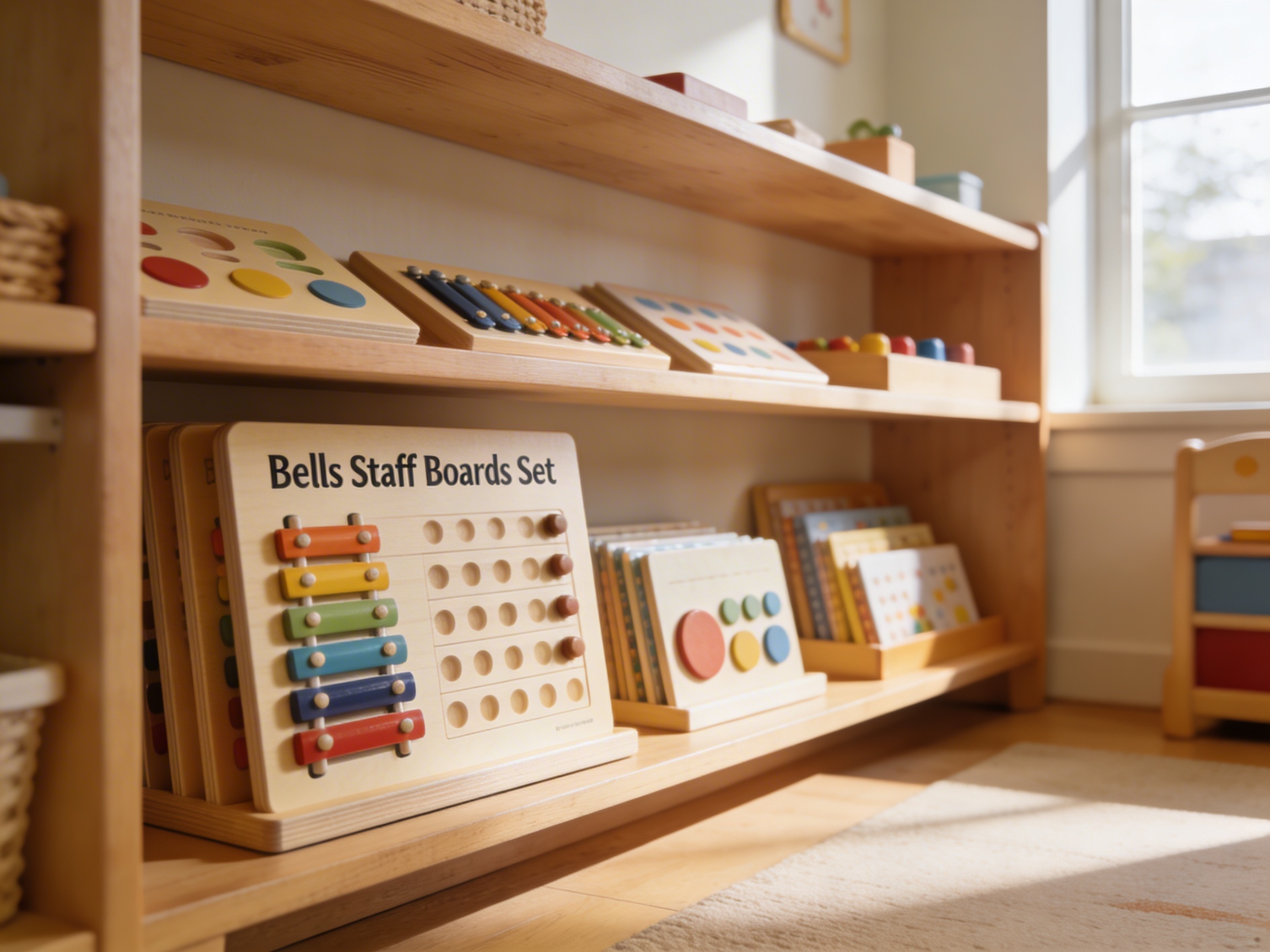 The boards help children visually understand the relationship between pitch and written music notation. By placing note markers on the staff lines while working with Montessori Bells, children develop music reading skills and pitch recognition simultaneously.