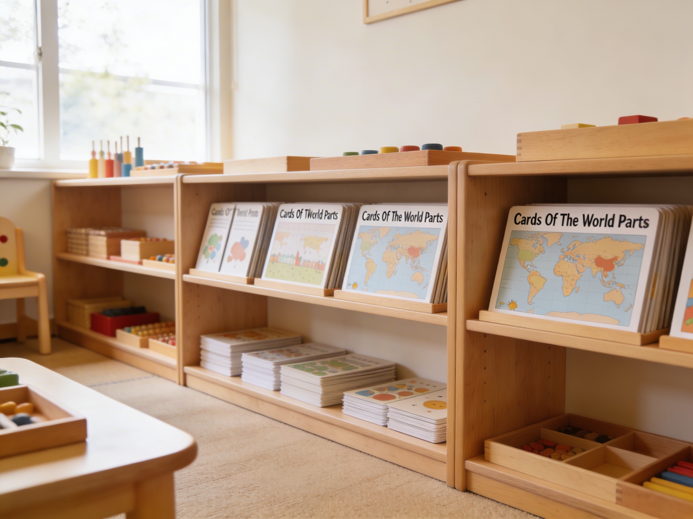 The Cards Of The World Parts is a Educational Materials Montessori material designed for children aged 3-6, crafted by Nienhuis Montessori to AMI standards.