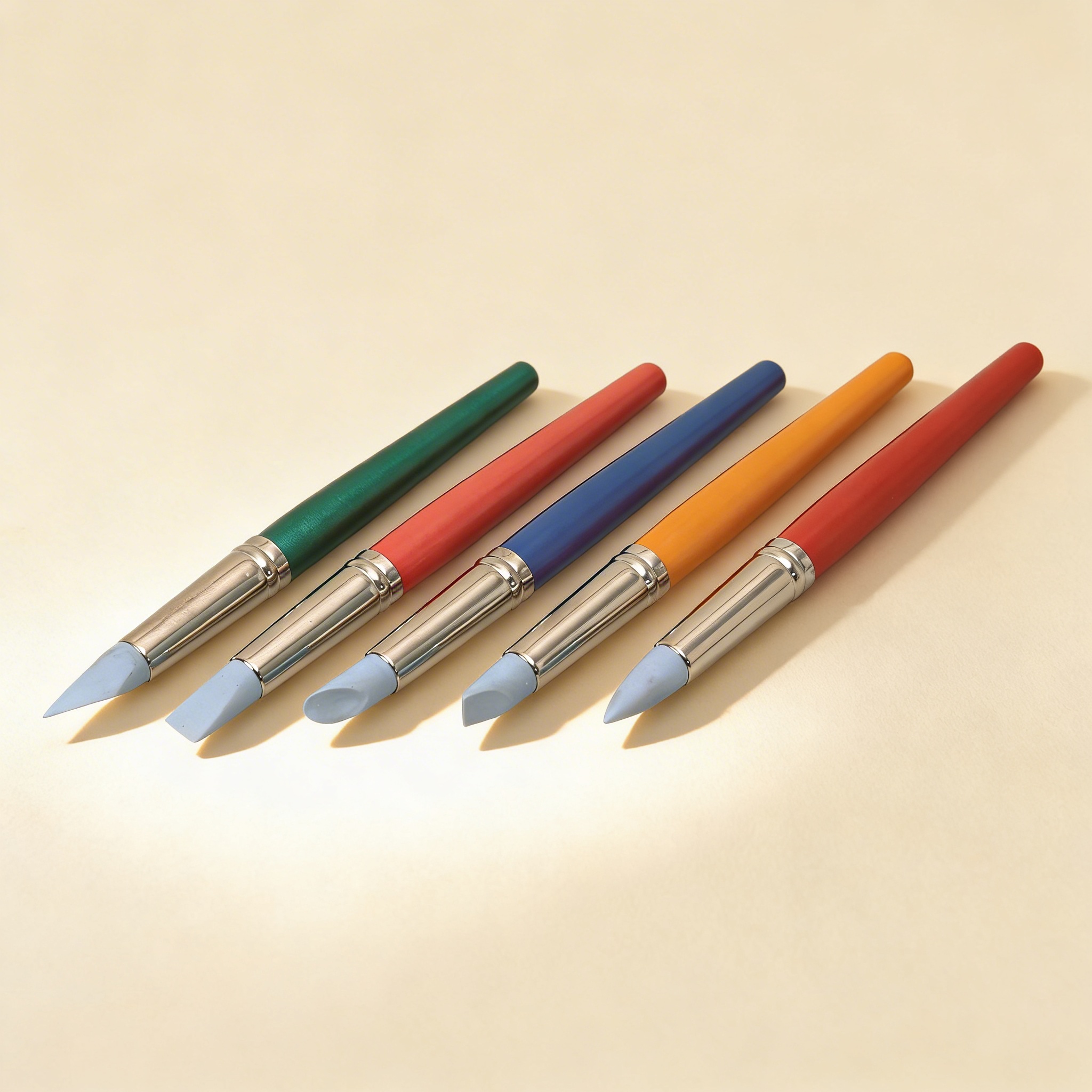 A professional-quality set of 5 clay sculpting tools in the brush/spatula model, designed for creative arts and crafts activities. Each tool features a different tip profile for versatile clay and modeling work. Perfect for Montessori art areas where children explore three-dimensional creation and develop fine motor precision through sculpting.
