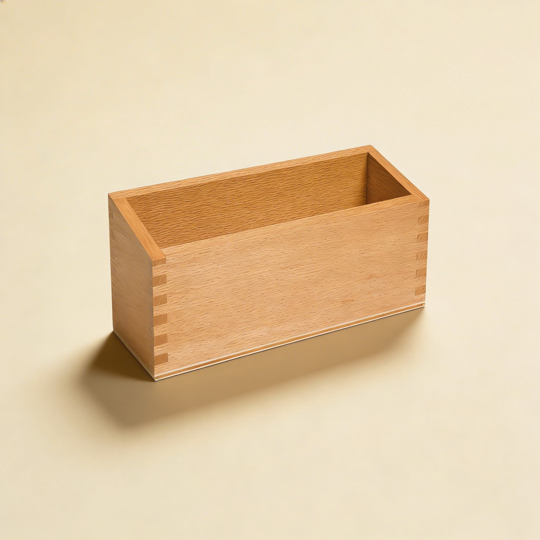 This beautifully crafted Command Box features expert dovetail joint construction and a smooth natural wood finish, designed for organizing Montessori grammar command cards and reading materials. The open-top design allows children easy access to language work materials while the sturdy plywood base ensures durability for daily classroom use.