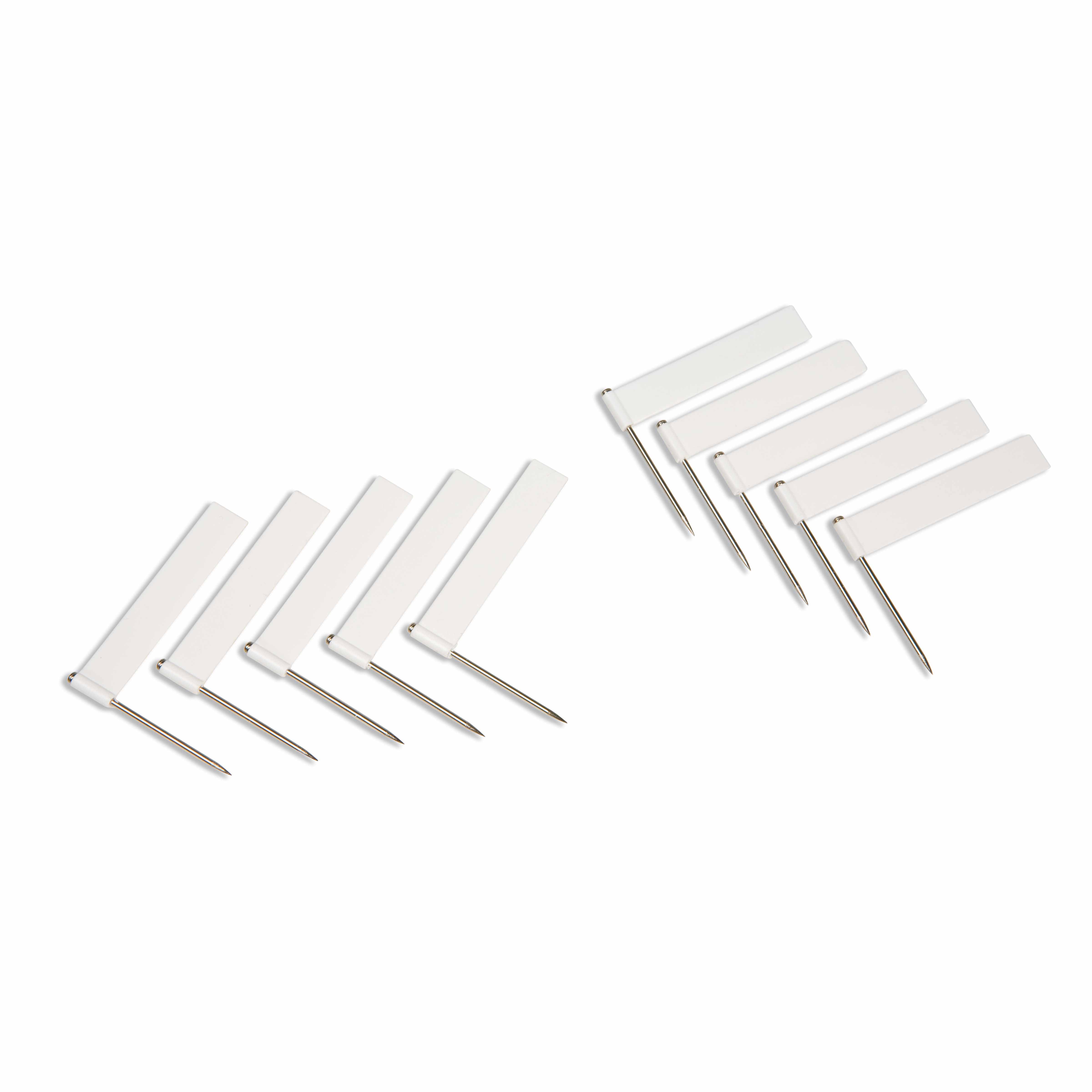 These white geography pin flags are essential materials for Montessori cultural studies, allowing children to mark locations on maps and globes with precision. The clean white flags provide a neutral marking system perfect for labeling countries, capitals, or geographic features during geography lessons. Each flag features a sturdy metal pin and smooth plastic flag head, designed for easy handling by young learners.