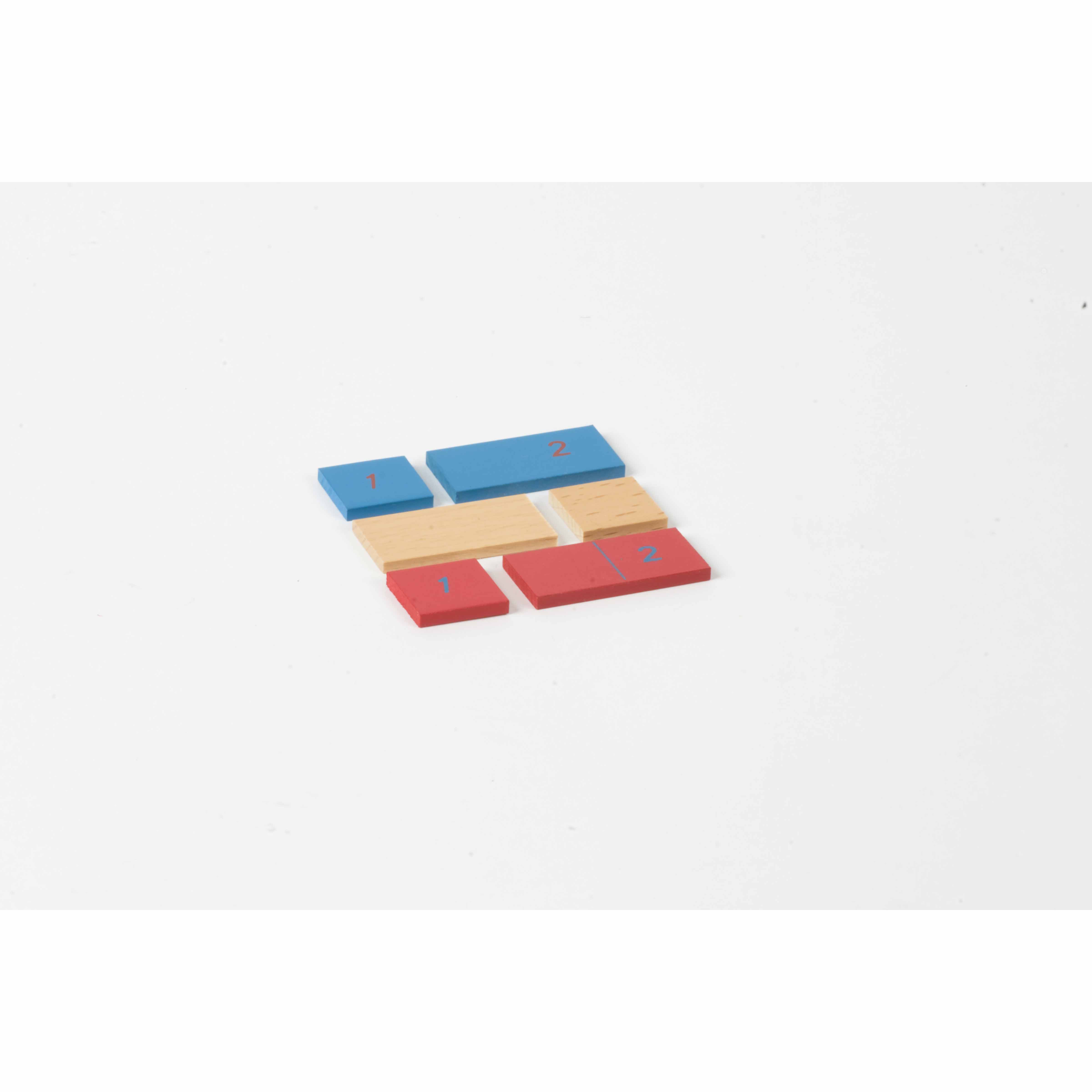 The First 2 Strips For Addition / Subtraction Strip Board: Red / Blue / Natural is a Mathematics Montessori material designed for children aged 3-6, crafted by Nienhuis Montessori to AMI standards.