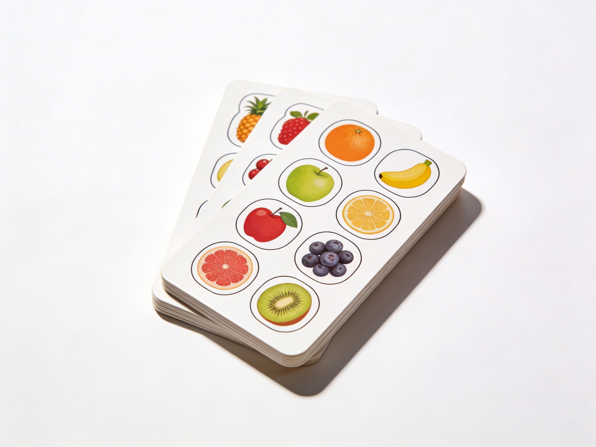 The set typically includes 14-20 pairs of fruit cards with realistic photographs, providing variety for matching activities while maintaining manageable quantities for young children.