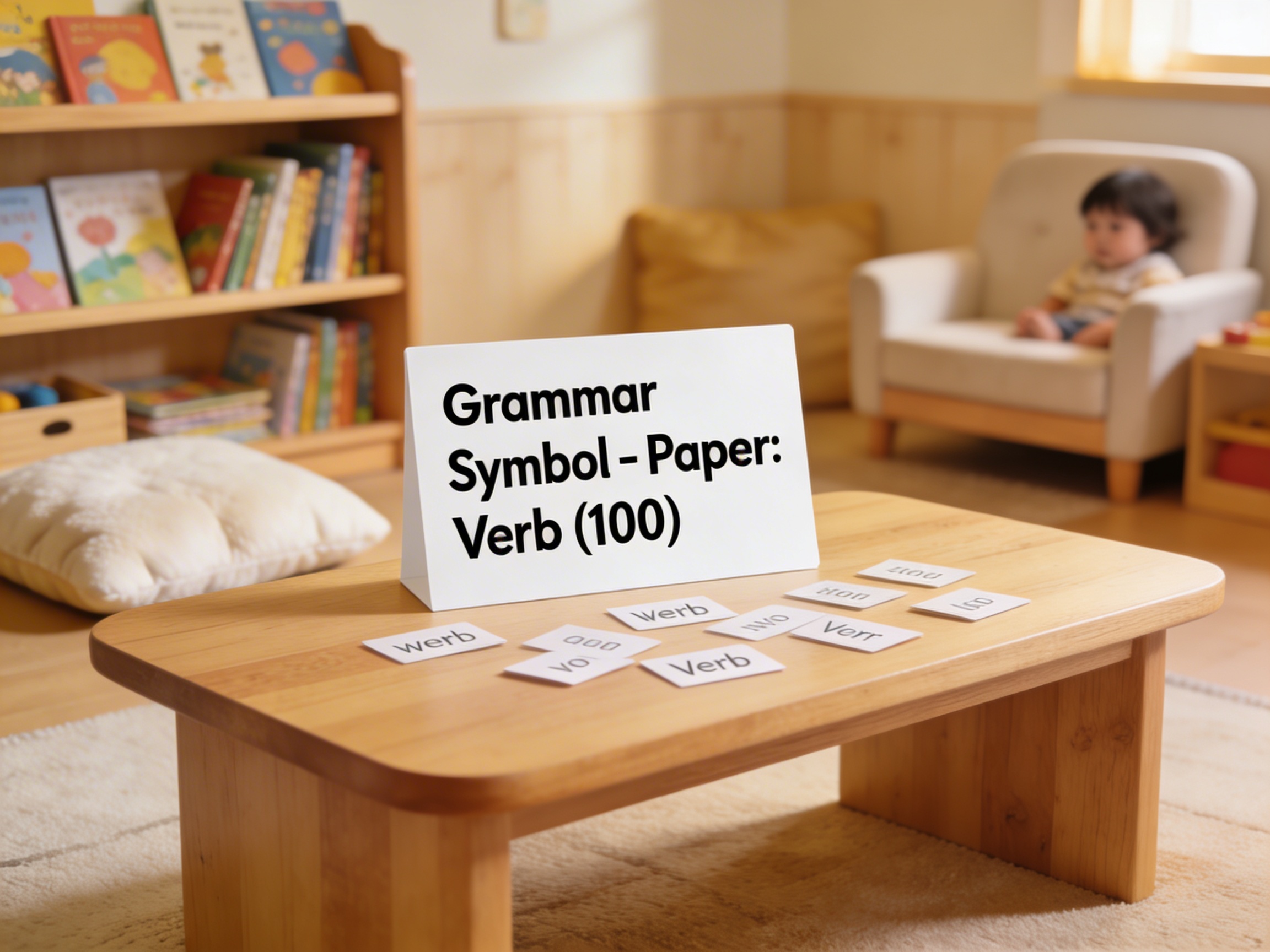 Children physically manipulate verb symbols to understand how action words function in sentences, building concrete understanding of abstract grammar concepts.