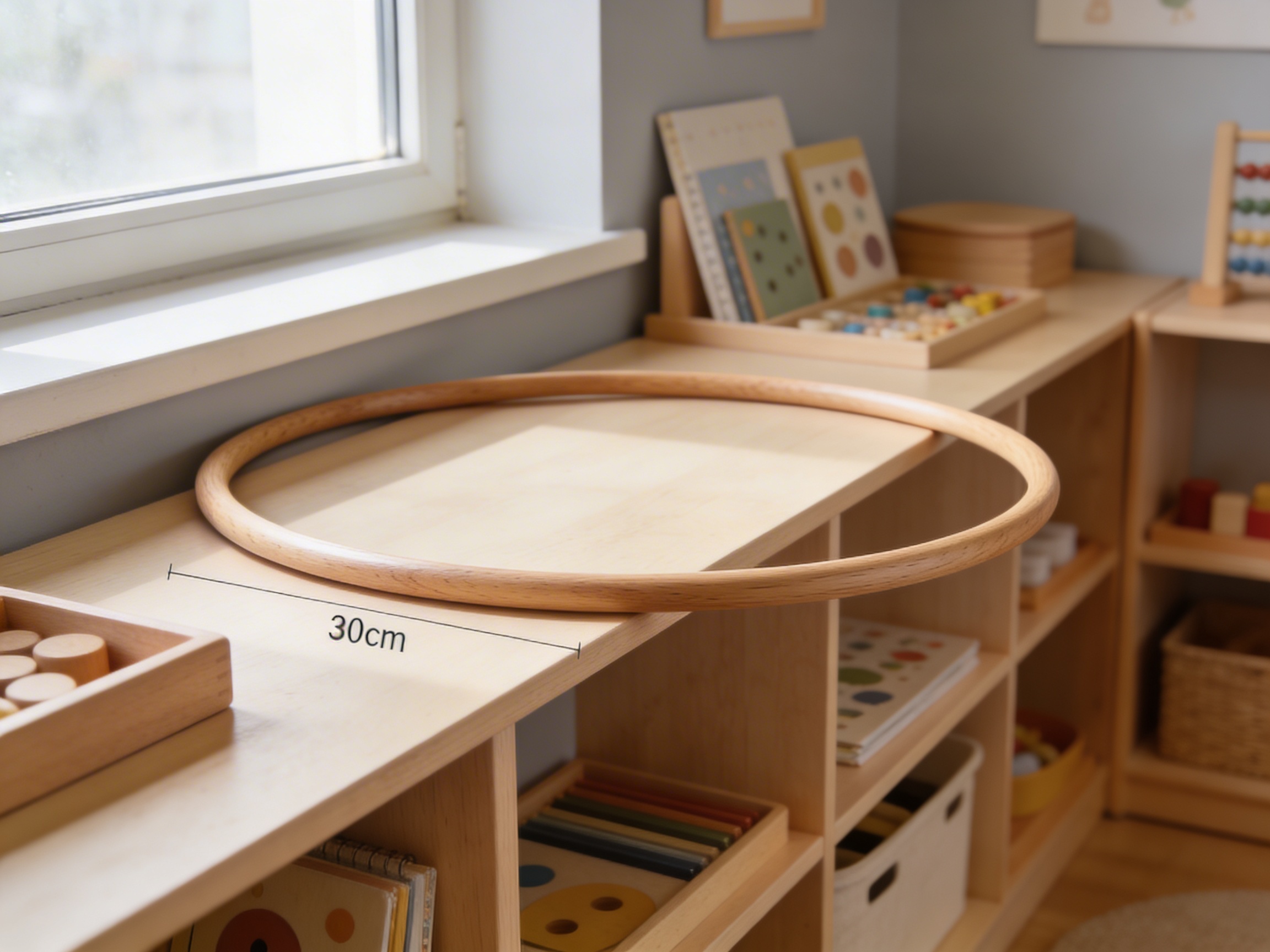This beautifully crafted bamboo hoop serves as a versatile movement and coordination tool in the Montessori environment. The 30cm diameter is perfectly sized for young children to practice rolling, spinning, and creative movement activities that develop gross motor skills and spatial awareness. The smooth, polished bamboo surface provides a natural tactile experience while supporting various physical education and rhythmic movement exercises.