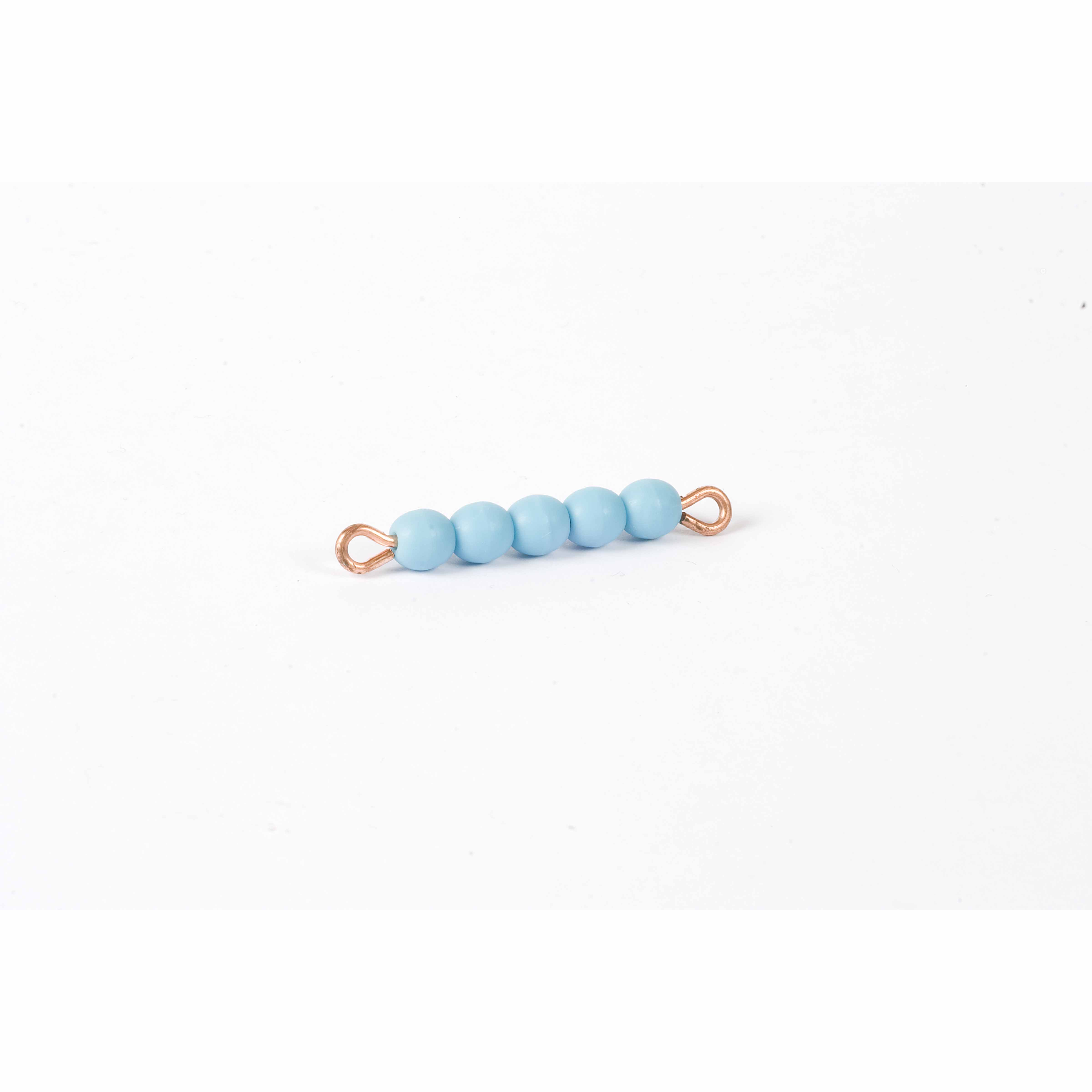 This Individual Glass Bead Bar of 5 features five light blue glass beads precisely threaded on metal wire, forming a fundamental unit in the Montessori bead material system. The durable construction with looped wire ends allows for easy connection and manipulation, helping children aged 3-6 build concrete understanding of quantity and prepare for mathematical operations through hands-on exploration.