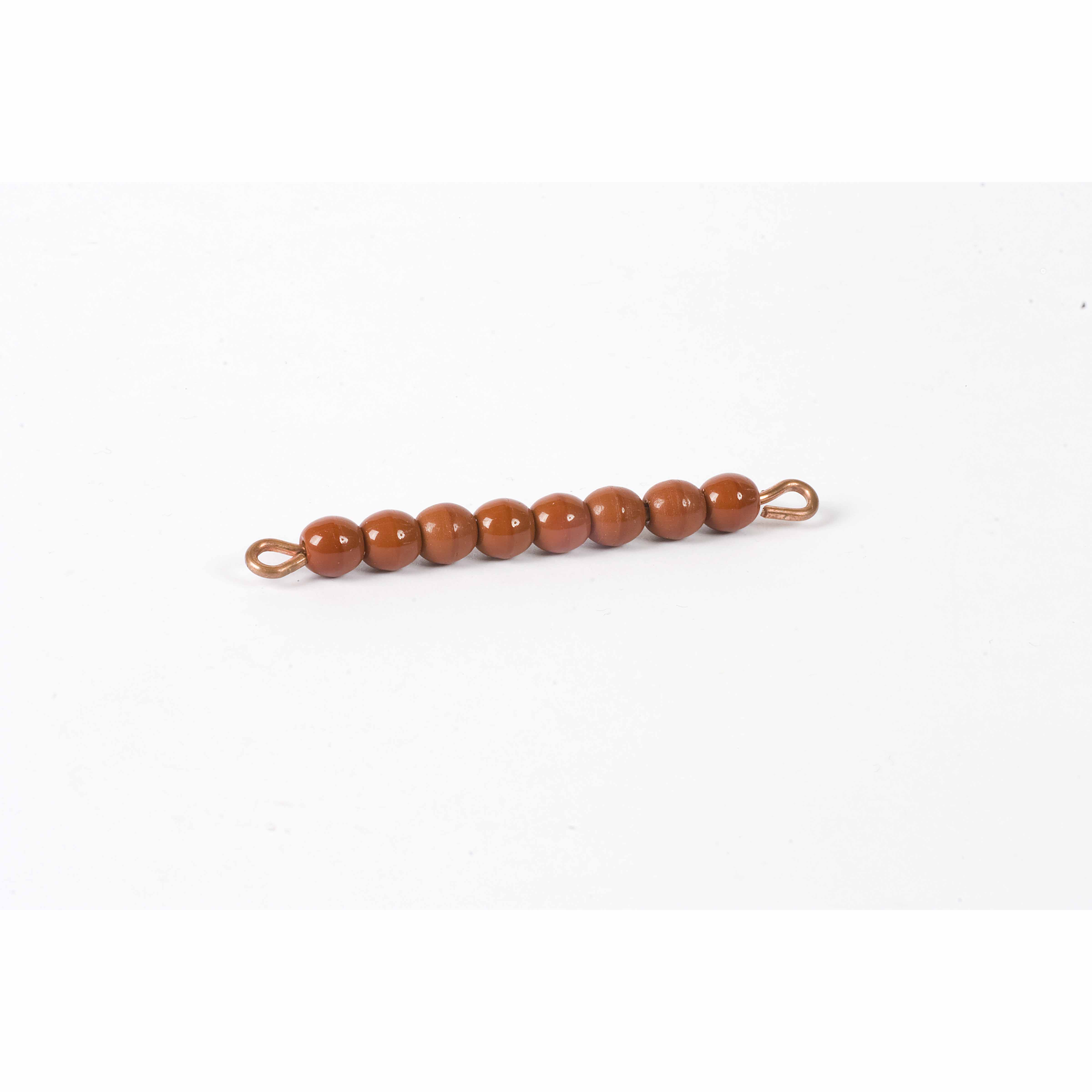 The Individual Glass Bead Bar Of 8: Brown is a Mathematics Montessori material designed for children aged 3-6, crafted by Nienhuis Montessori to AMI standards.