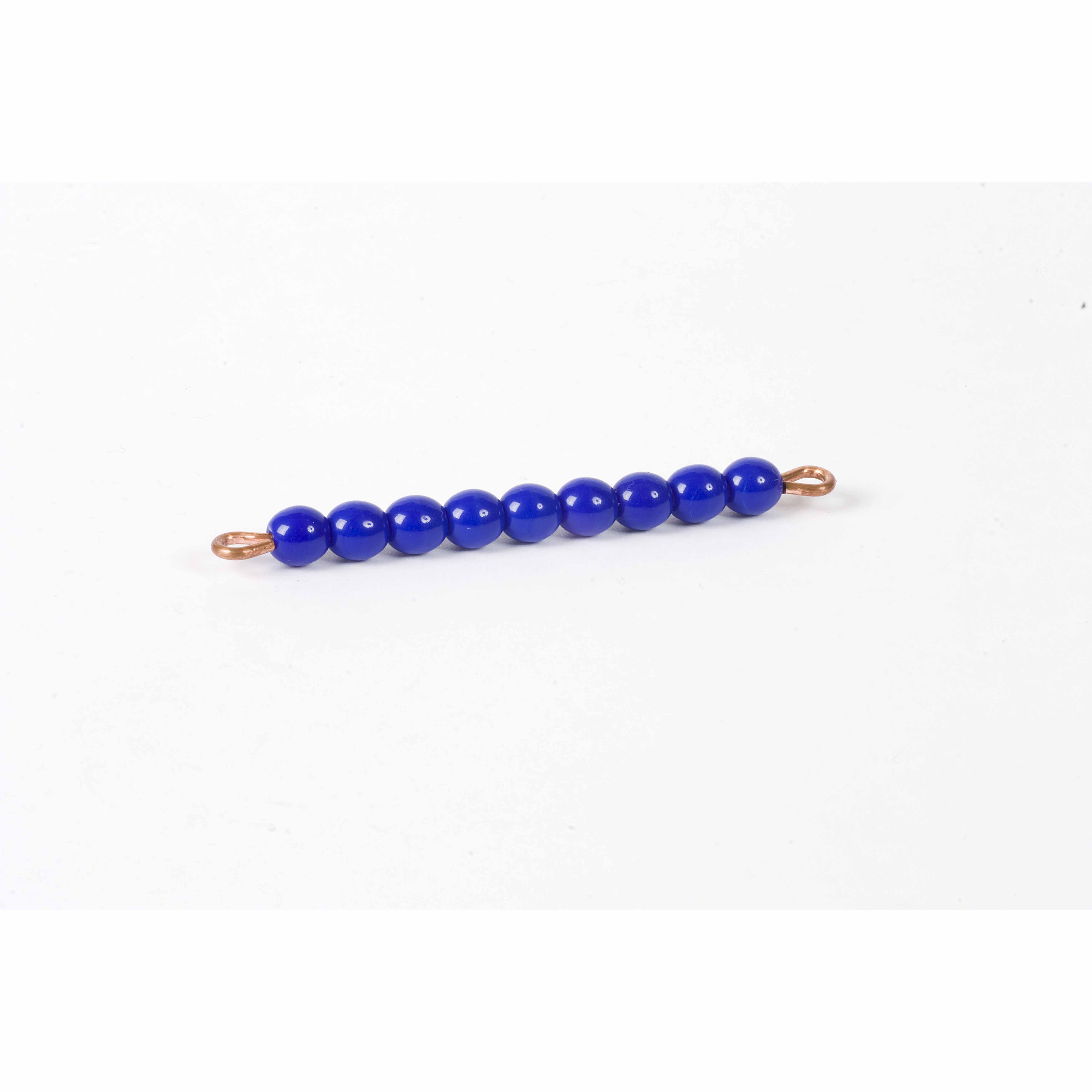 The Individual Glass Bead Bar Of 9: Dark Blue is a Mathematics Montessori material designed for children aged 3-6, crafted by Nienhuis Montessori to AMI standards.