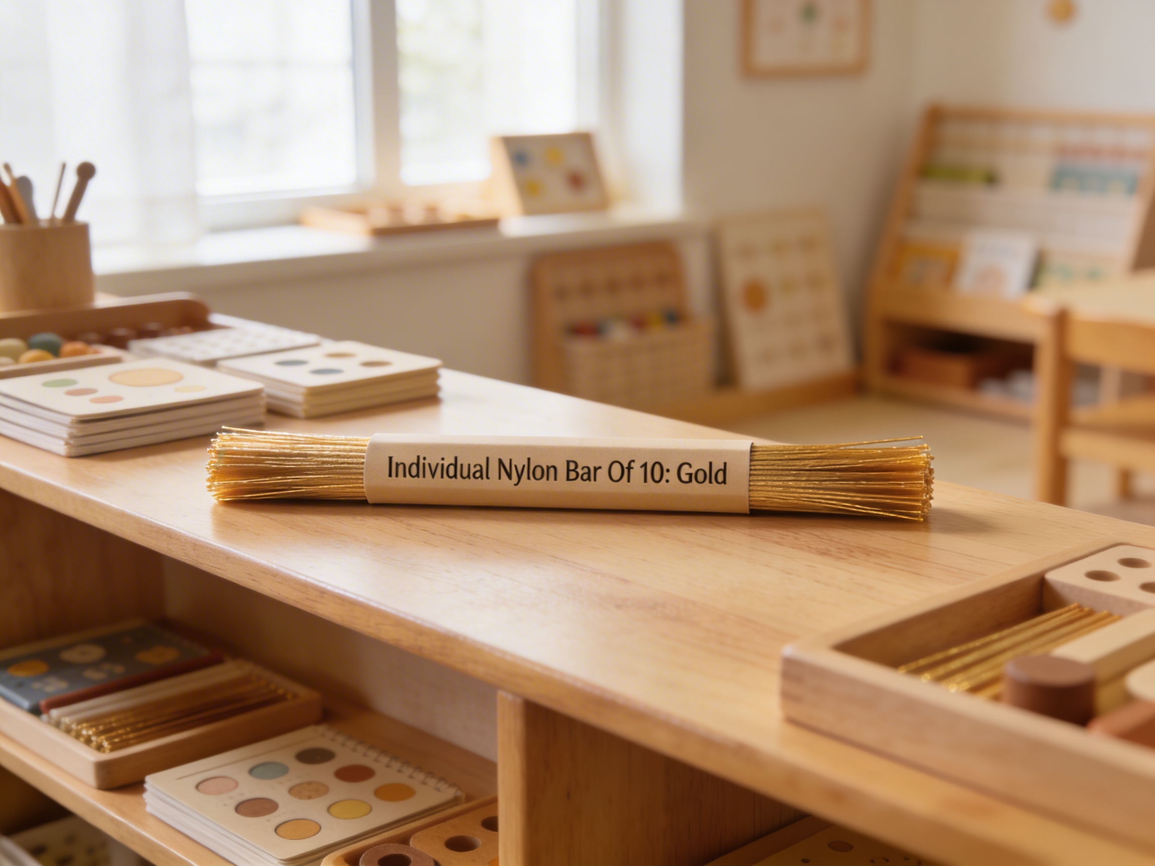 The Individual Nylon Bar Of 10: Gold is a Educational Materials Montessori material designed for children aged 3-6, crafted by Nienhuis Montessori to AMI standards.