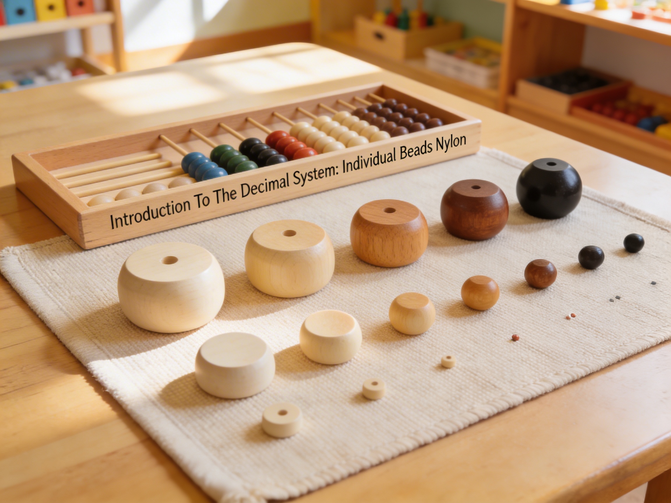 The Introduction To The Decimal System: Individual Beads Nylon is a Mathematics Montessori material designed for children aged 3-6, crafted by Nienhuis Montessori to AMI standards.