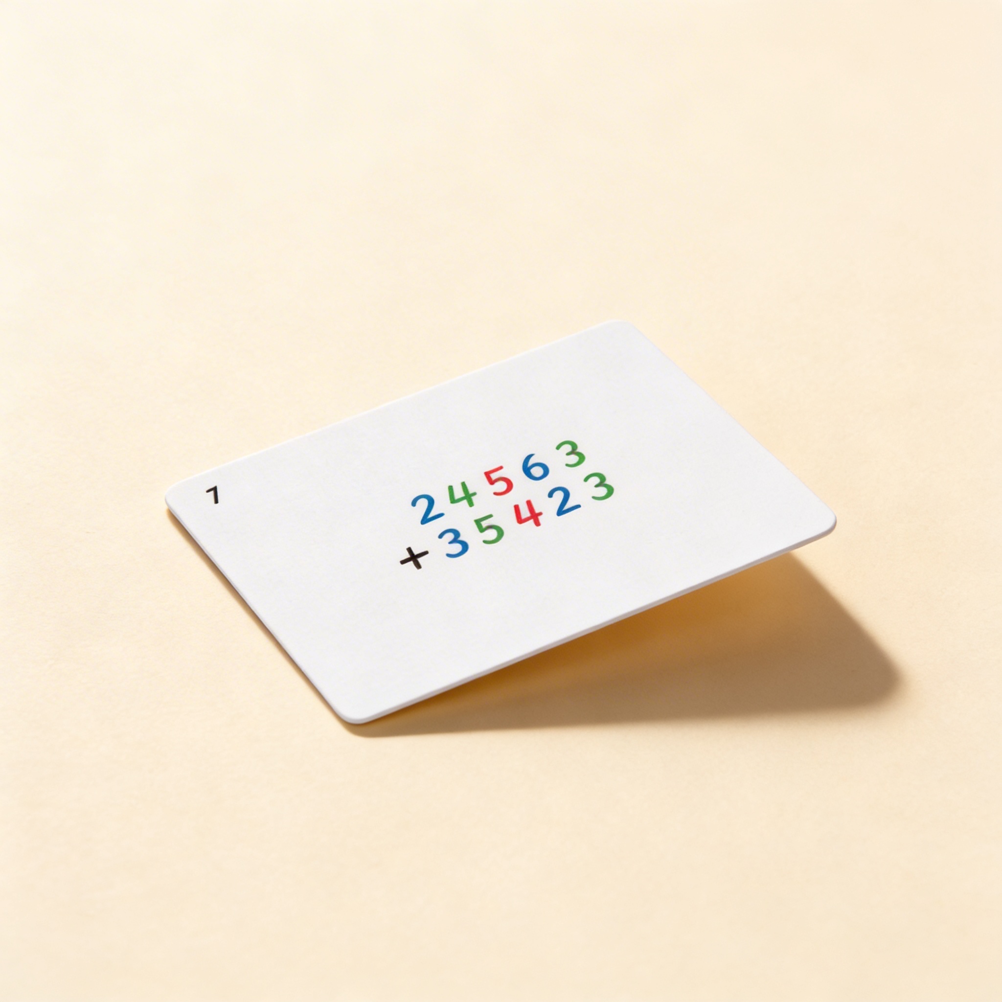 The laminated cards follow a careful progression from simple addition without regrouping to more complex problems requiring carrying. This sequential approach allows children to build confidence and understanding gradually, matching their developmental readiness.