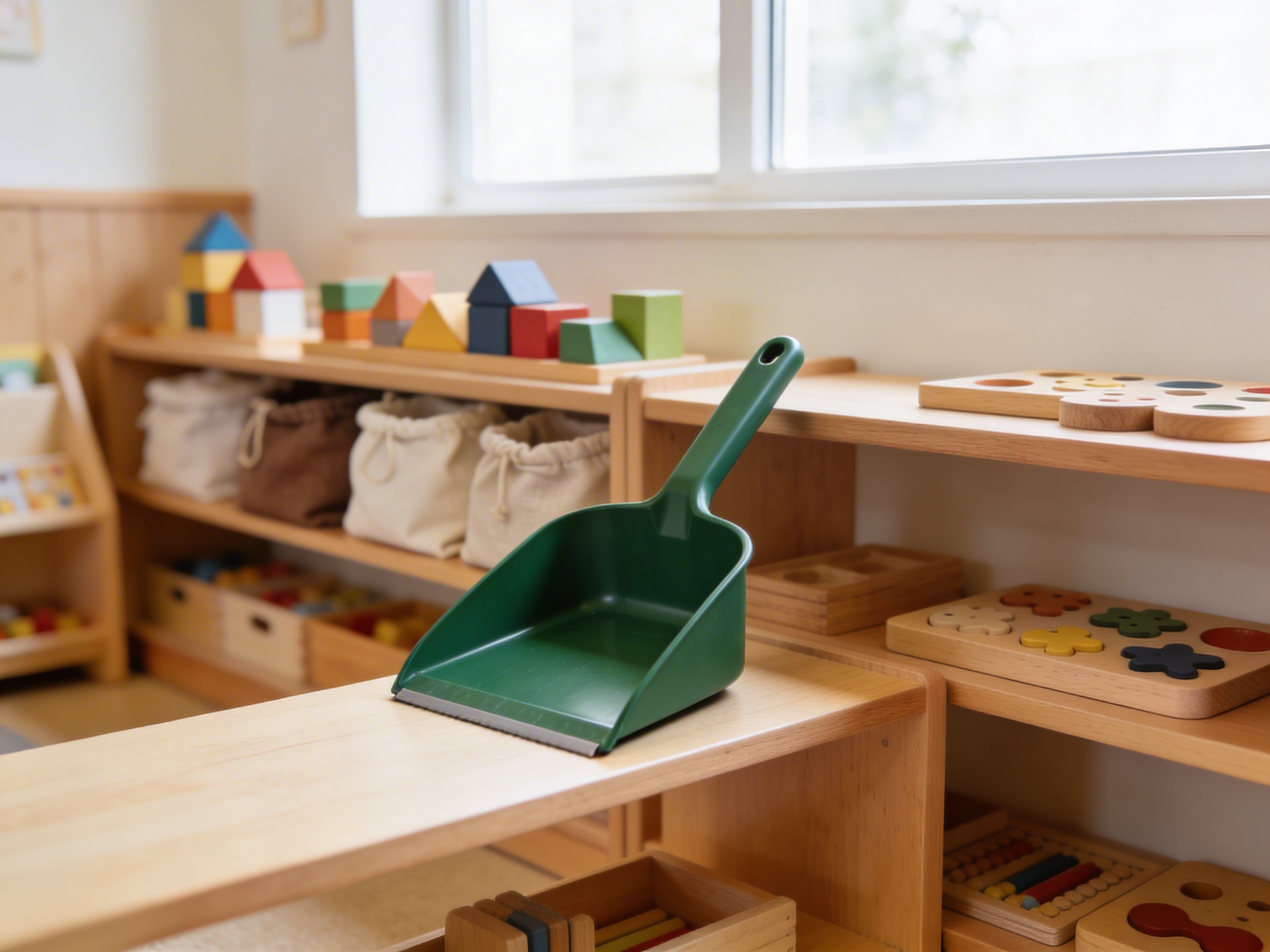 This dustpan encourages independence, fine motor development, and care of environment - key Montessori principles. Children learn real-life skills through purposeful movement and contribute to maintaining their space.