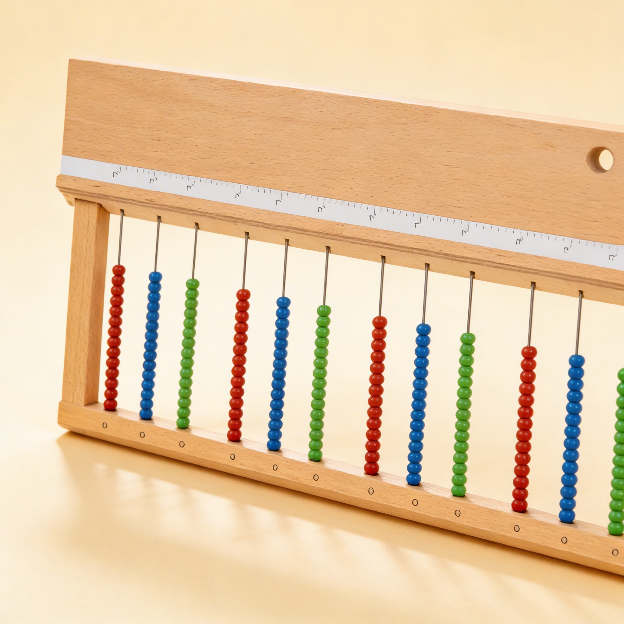 Our Multi-Base Bead Frame meets rigorous AMI standards, featuring precision-crafted wooden construction with smooth edges and child-safe finishes. The color-coded beads are carefully sized for small hands, while the sliding cover mechanism operates smoothly for years of use. This premium construction ensures the material will serve multiple children and maintain its educational value over time.