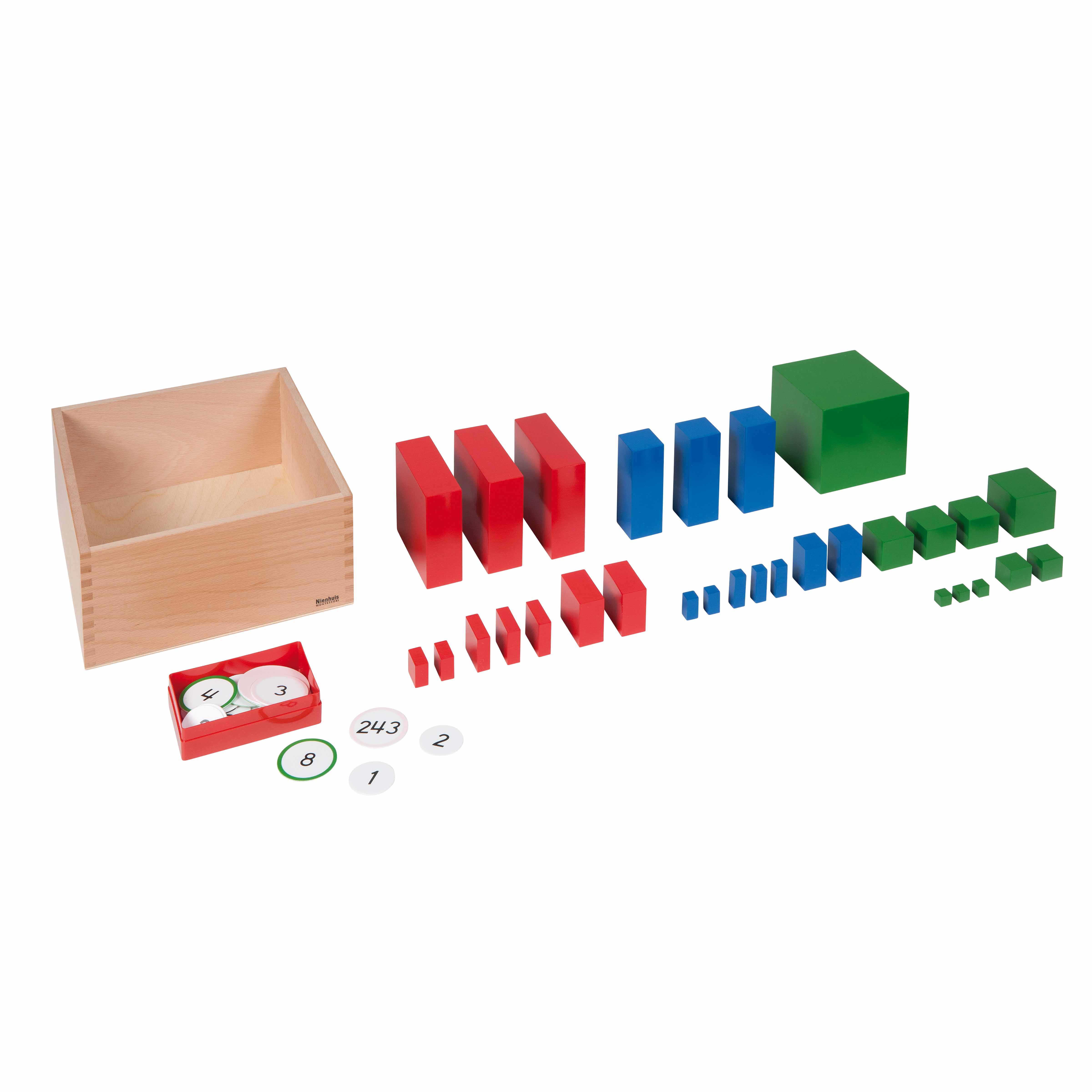 The Multibase Material is a Educational Materials Montessori material designed for children aged 6-12, crafted by Nienhuis Montessori to AMI standards.