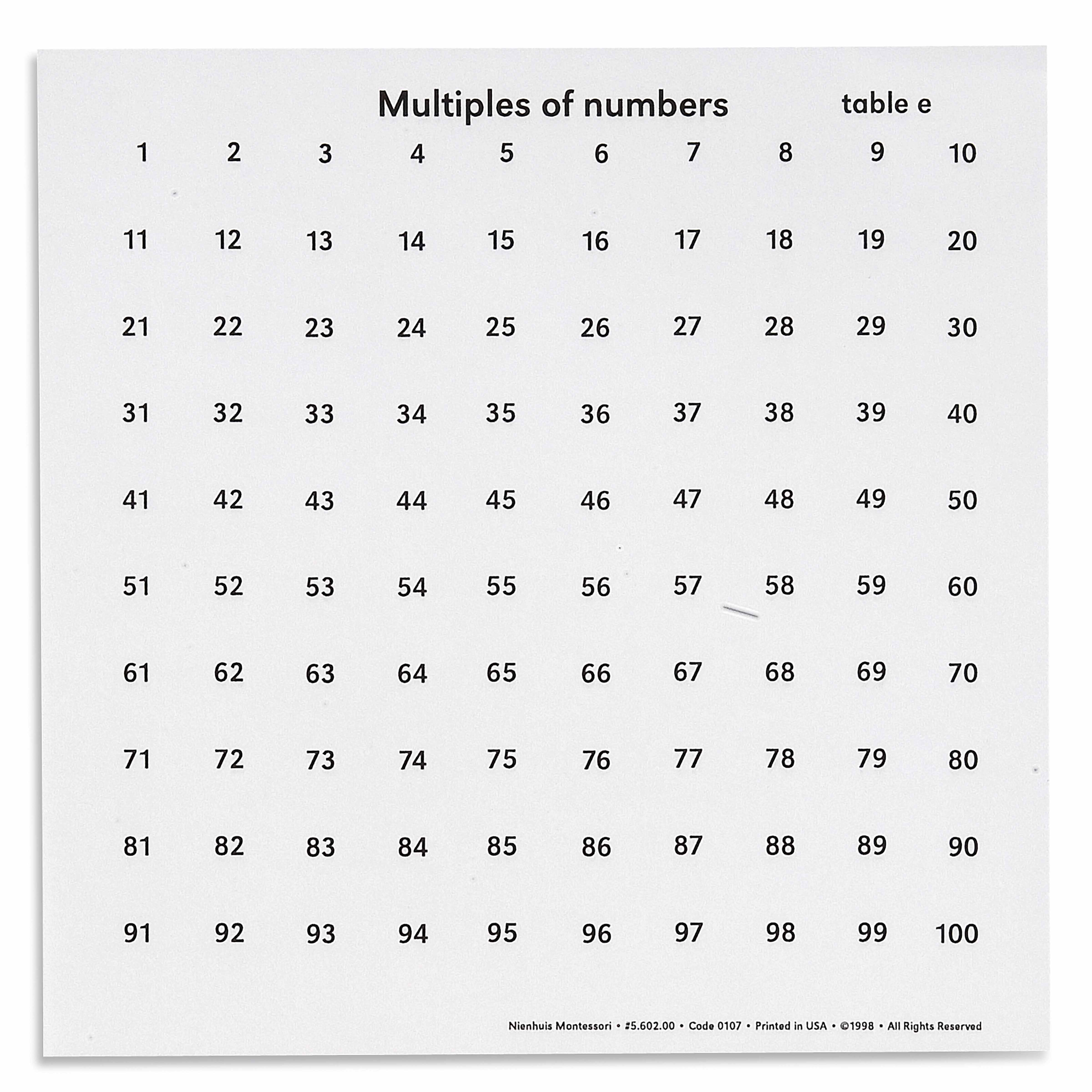 The Multiples Of Numbers Tables is a Mathematics Montessori material designed for children aged 6-12, crafted by Nienhuis Montessori to AMI standards.