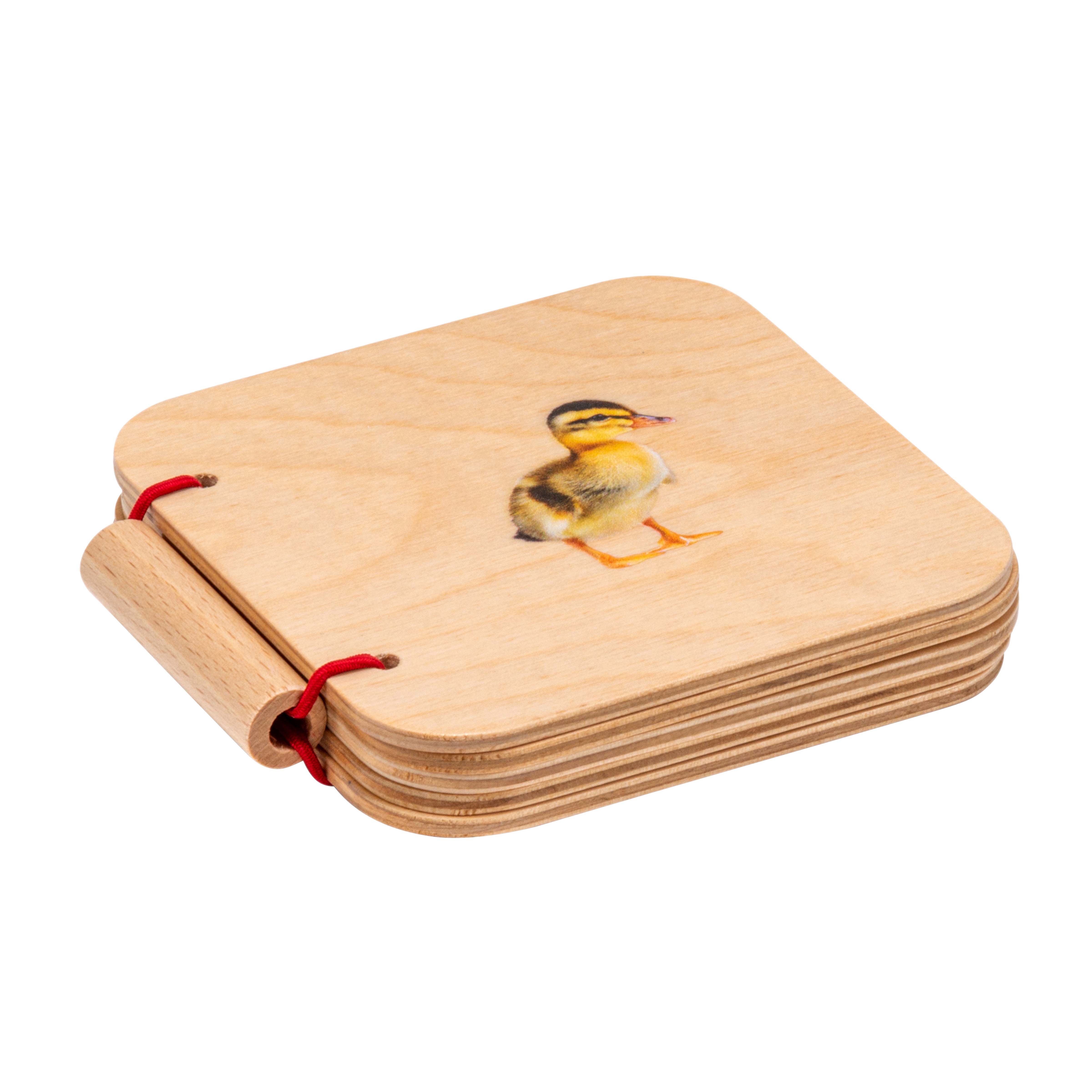Smooth plywood pages provide durability while maintaining the sensory experience of real book pages. The natural wood grain adds tactile interest as children explore.