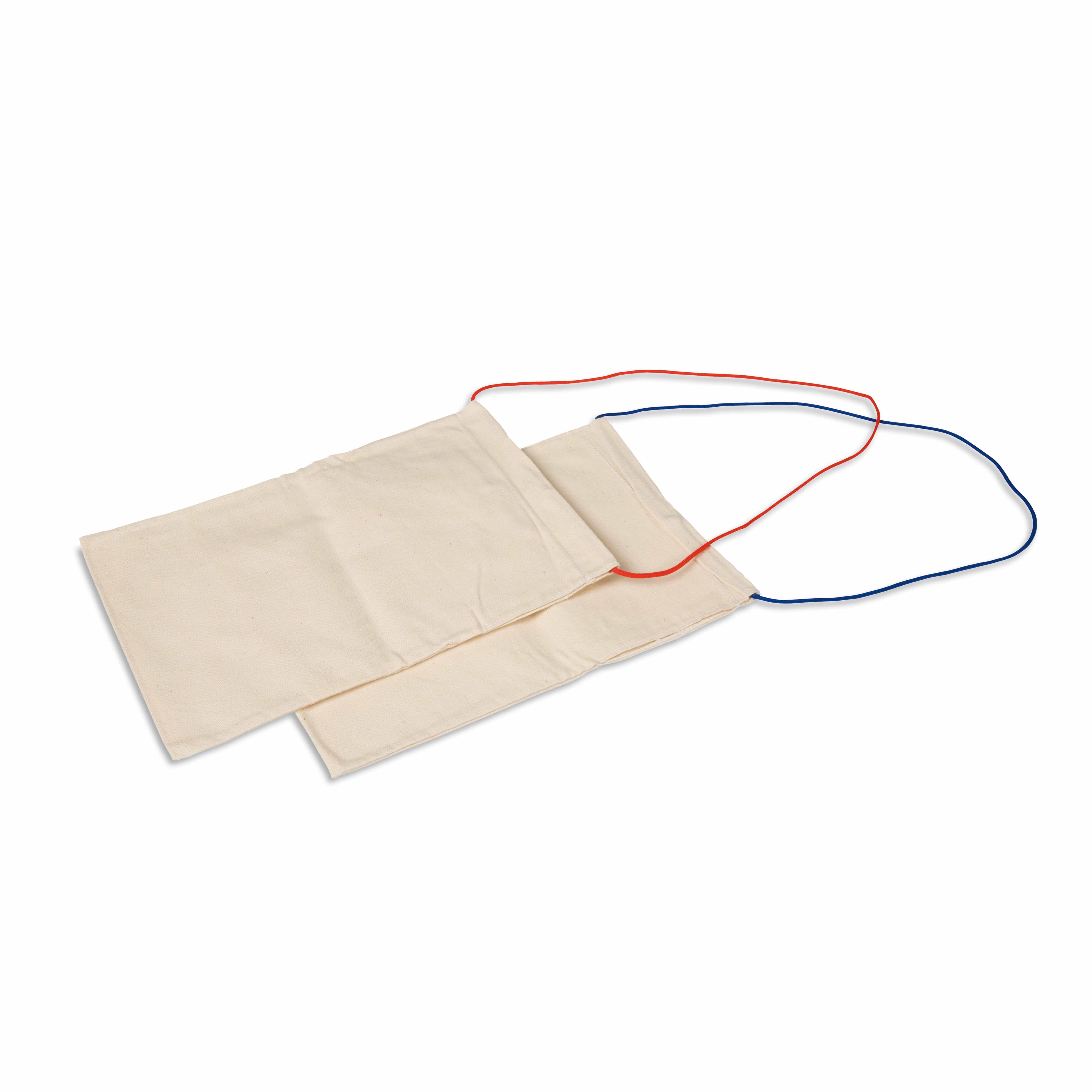 This set includes multiple empty cotton bags, each measuring approximately 15-20cm, ideal for holding various small objects. The bags feature colorful drawstring closures that help children practice fine motor skills while keeping contents secure during activities.