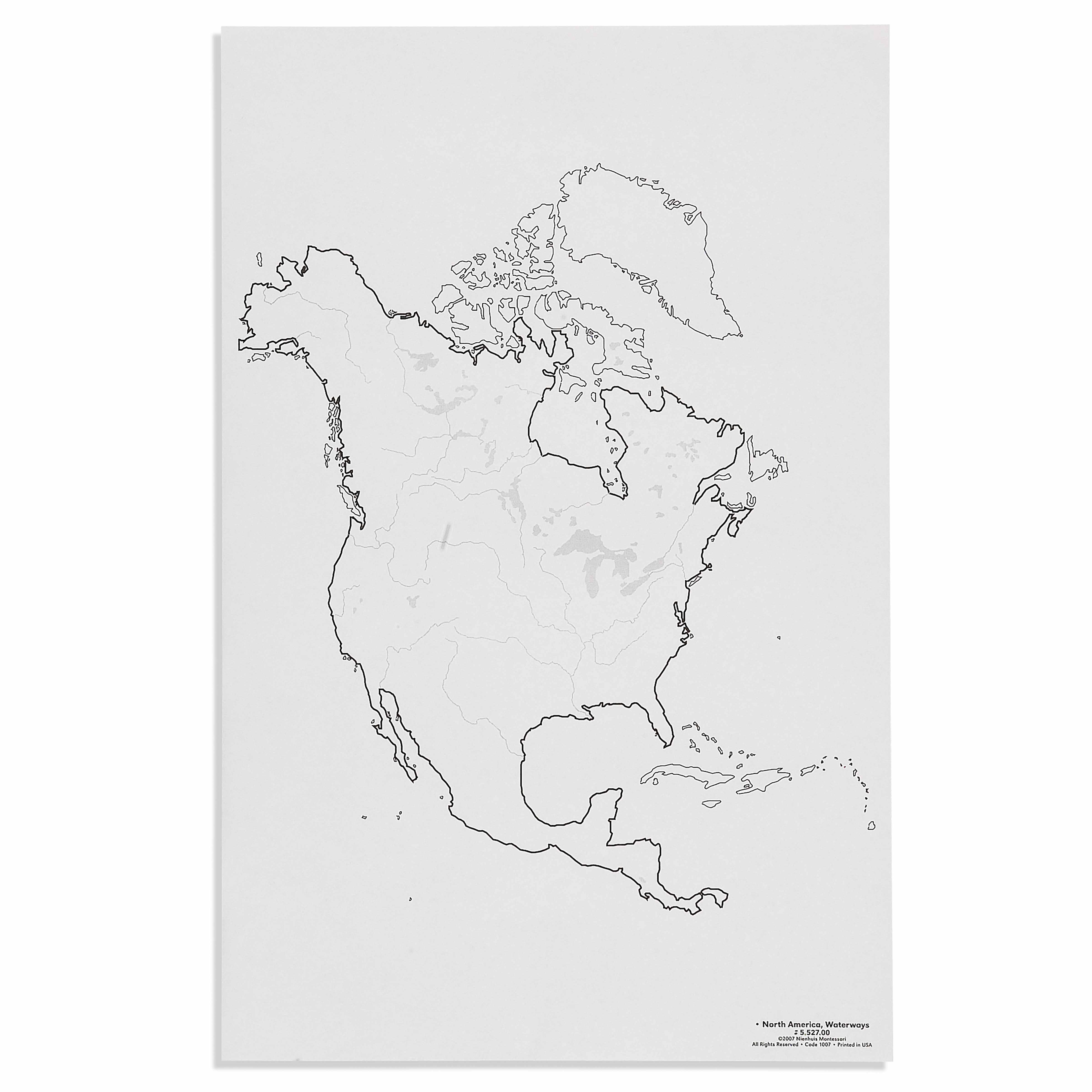 The North America: Waterways (50) is a category.geography Montessori material designed for children aged 3-6, crafted by Nienhuis Montessori to AMI standards.