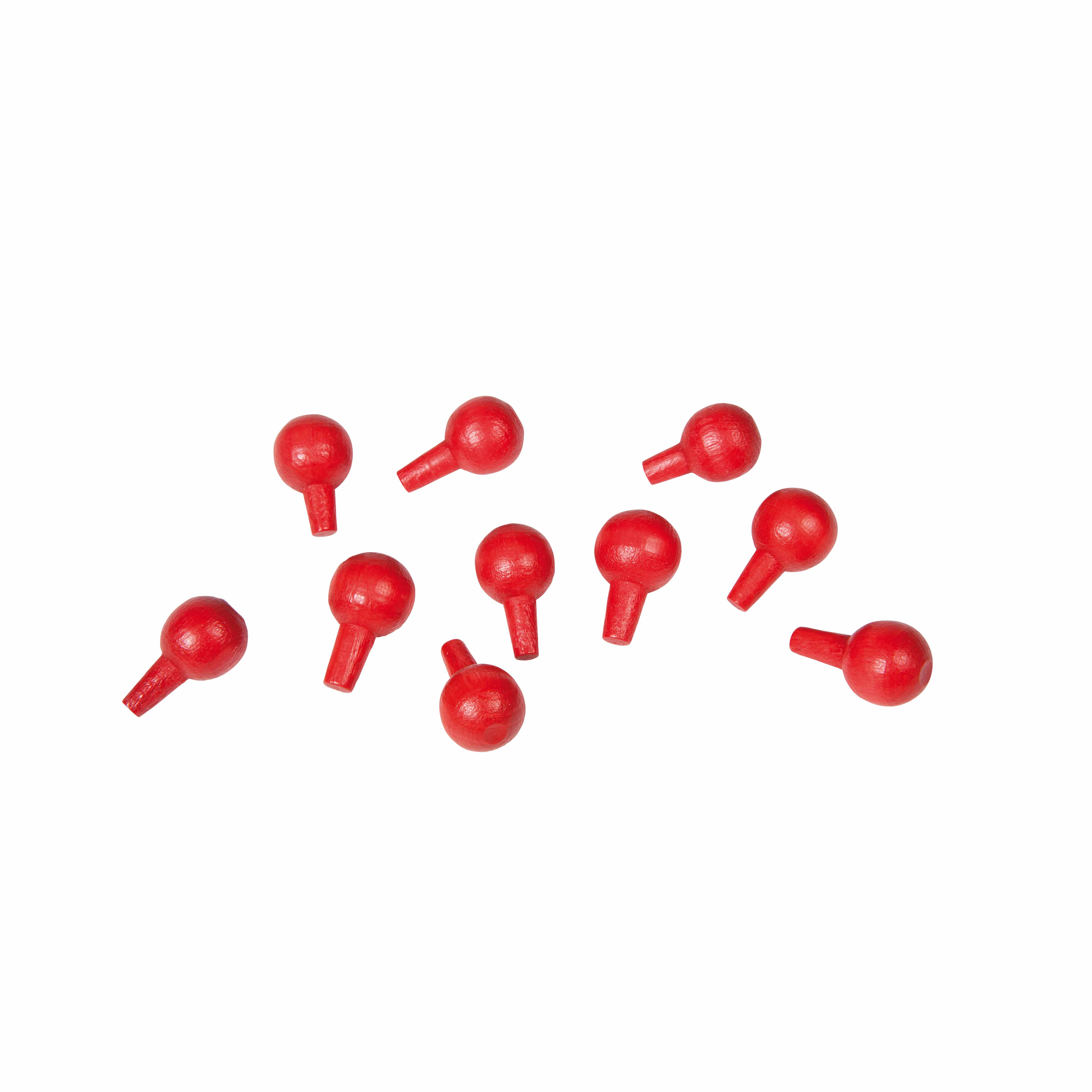 This set includes 10 red pegs, each featuring a spherical top for easy grasping and a cylindrical stem that fits securely into the Algebraic Peg Board holes.