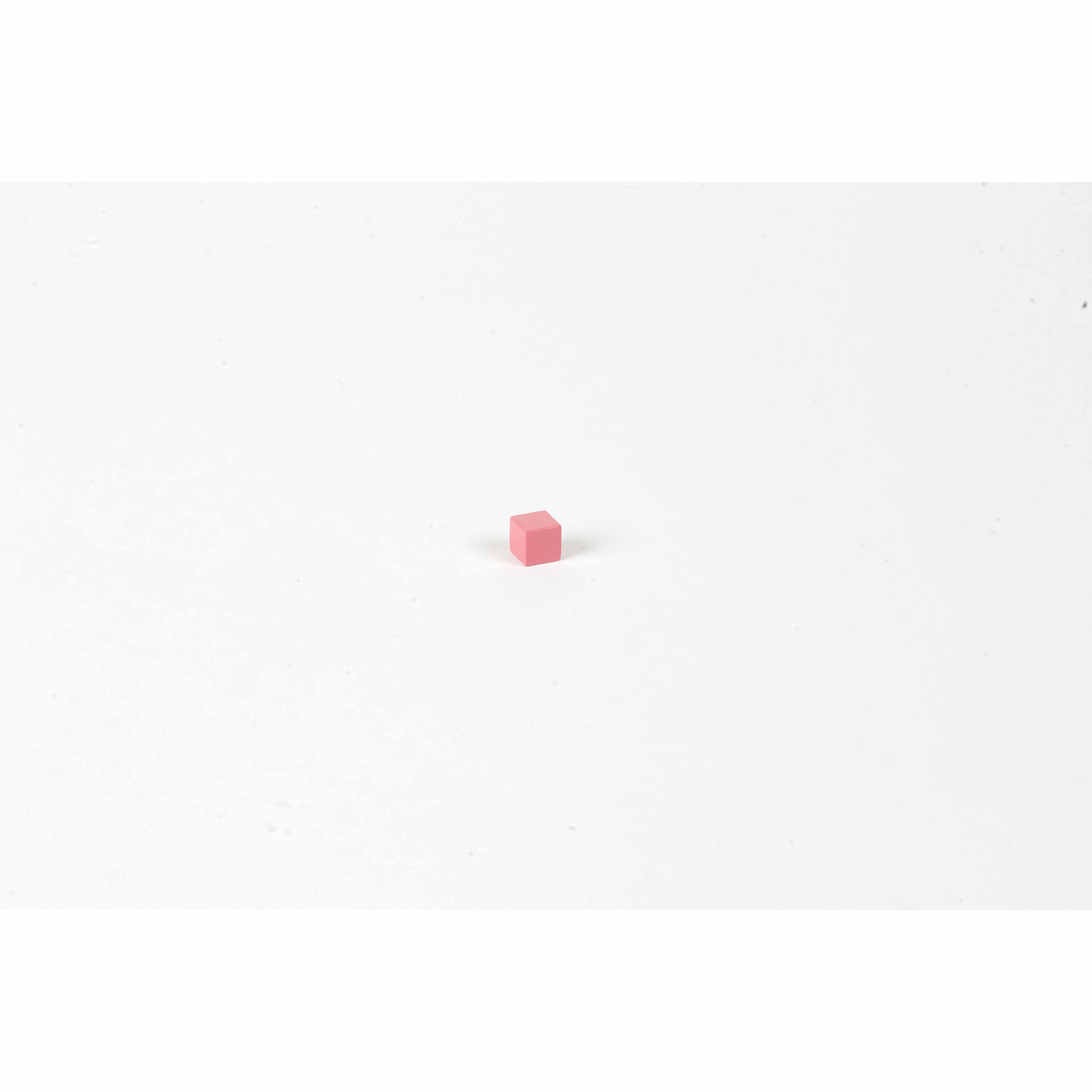 This individual 1cm³ cube represents the smallest unit of the Pink Tower, a foundational Montessori sensorial material. The precisely crafted wooden cube with its smooth pink finish serves as a replacement piece or can be used for extension activities exploring size relationships and mathematical concepts.