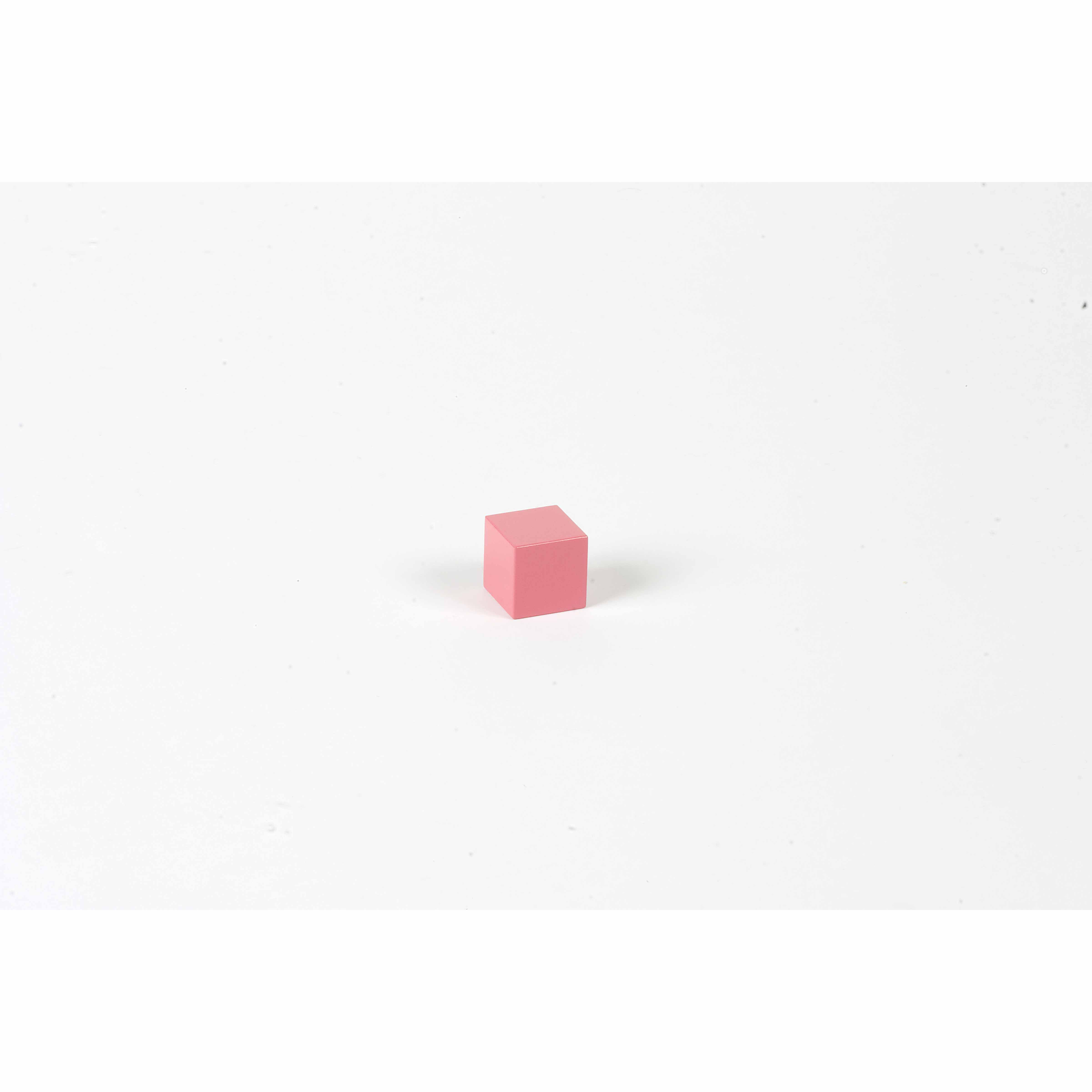 This is the smallest cube (cube #1) in the traditional 10-cube Pink Tower set, representing the fundamental unit upon which all other cubes are based.