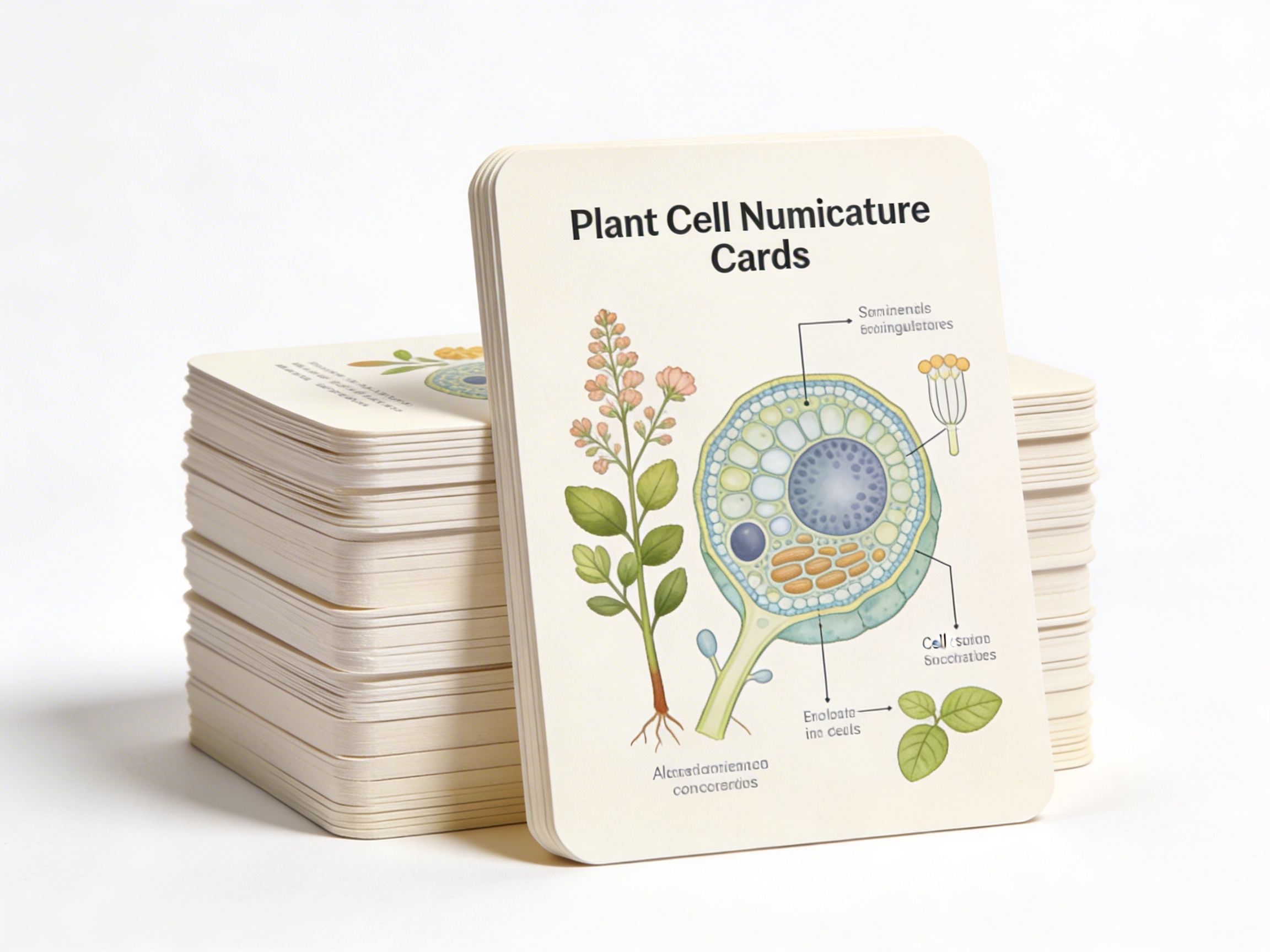 The cards present simplified, color-coded diagrams focusing on basic components like cell wall, nucleus, and chloroplasts. Children absorb the vocabulary and visual patterns through repetition and matching activities, building foundational knowledge for later detailed study.