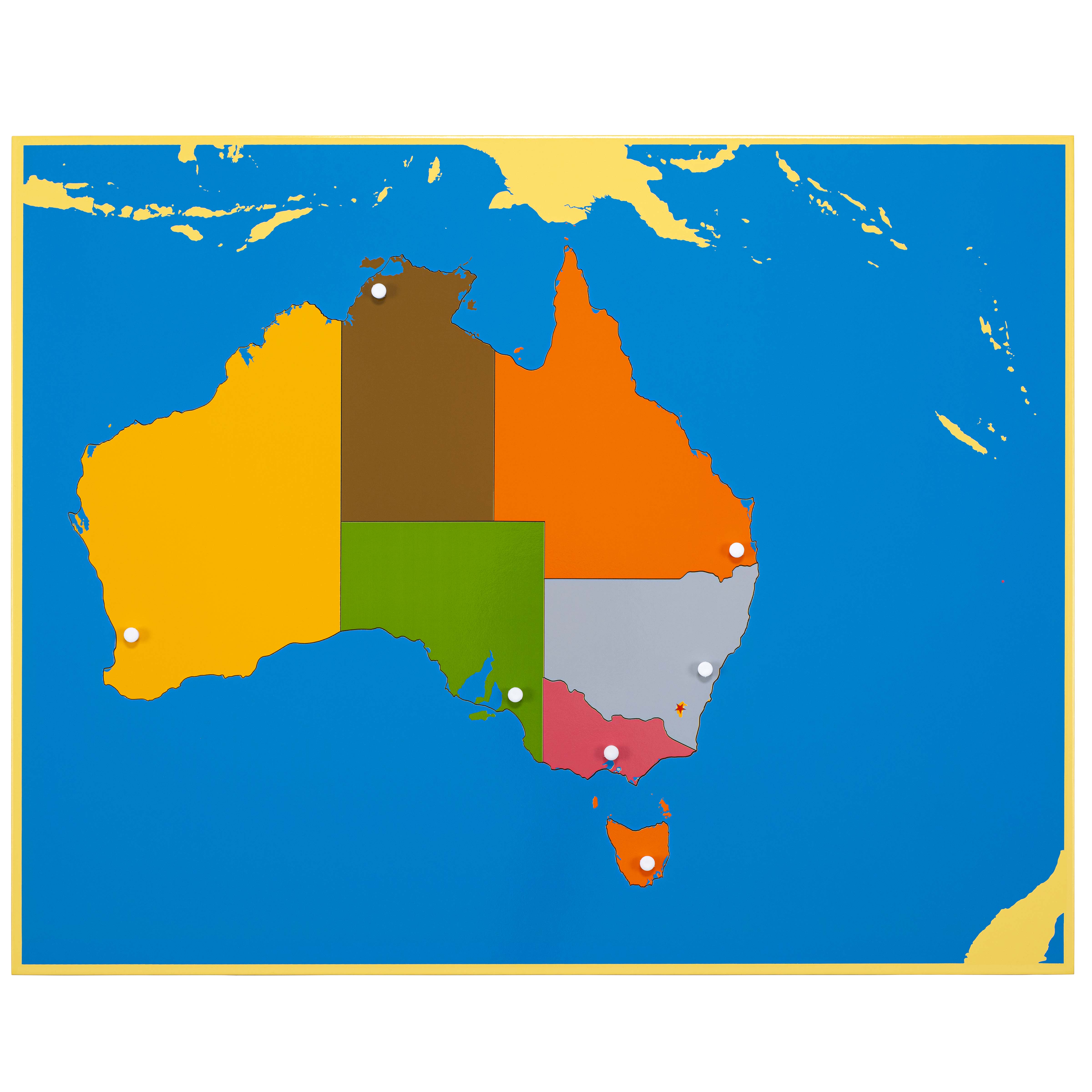 The Puzzle Map: Australia is a category.geography Montessori material designed for children aged 3-6, crafted by Nienhuis Montessori to AMI standards.