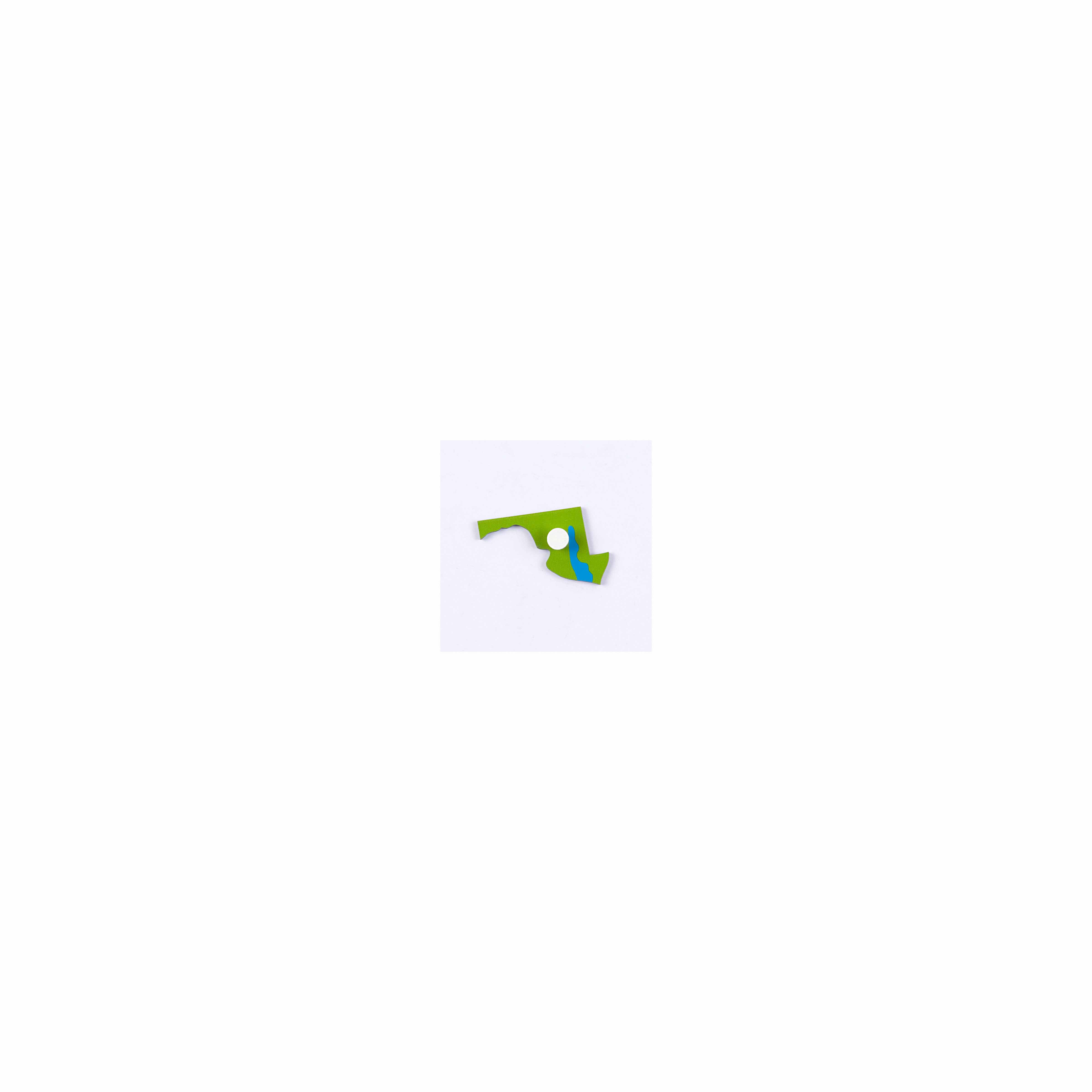 This precision-cut Maryland state puzzle piece introduces children to American geography through hands-on exploration. Crafted from smooth painted wood composite, the piece features Maryland's distinctive shape with a location marker, helping young learners develop spatial awareness and geographical knowledge through the Montessori approach to concrete learning.