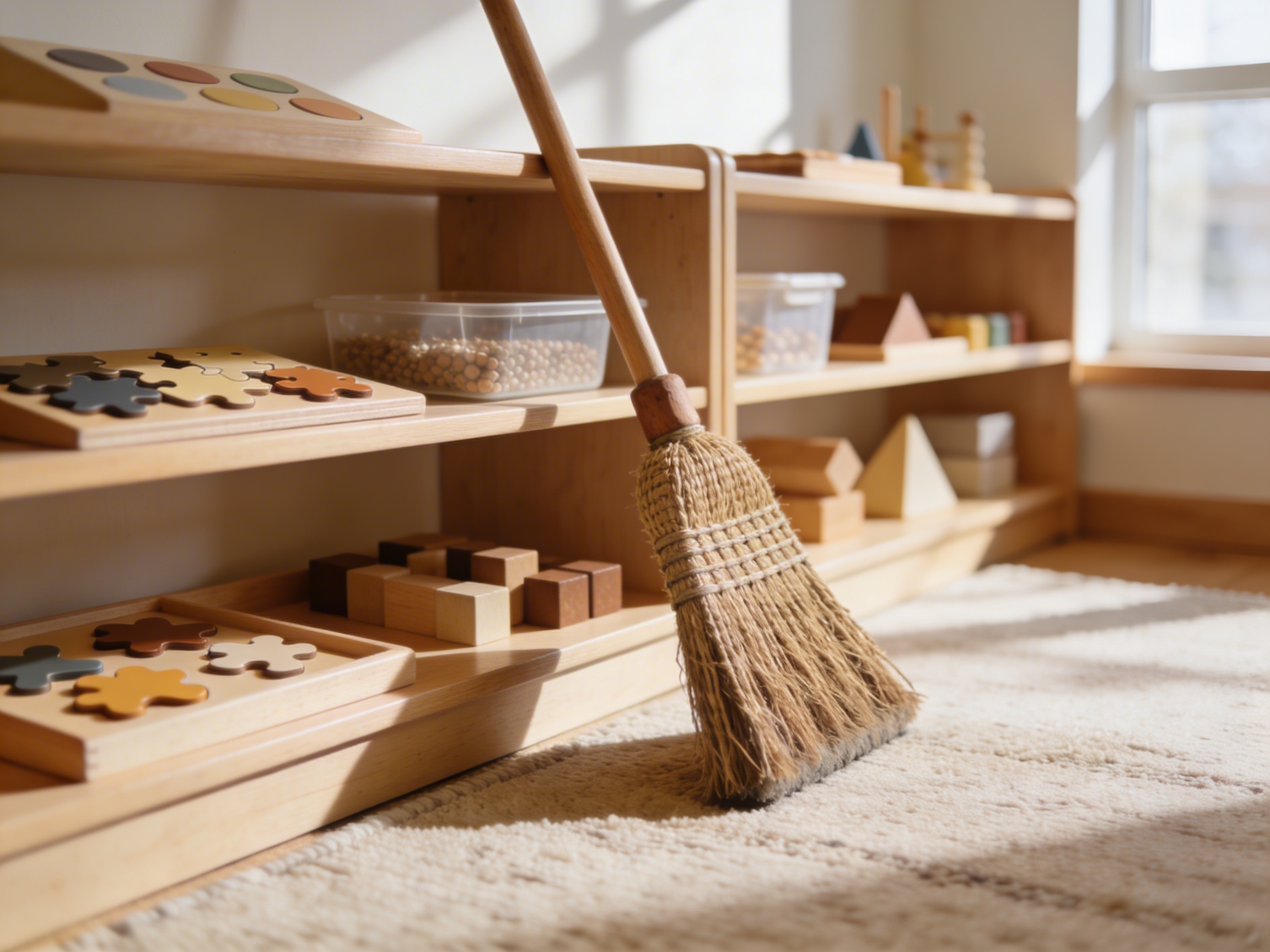 Using real tools for household maintenance fosters responsibility and connection to the prepared environment.