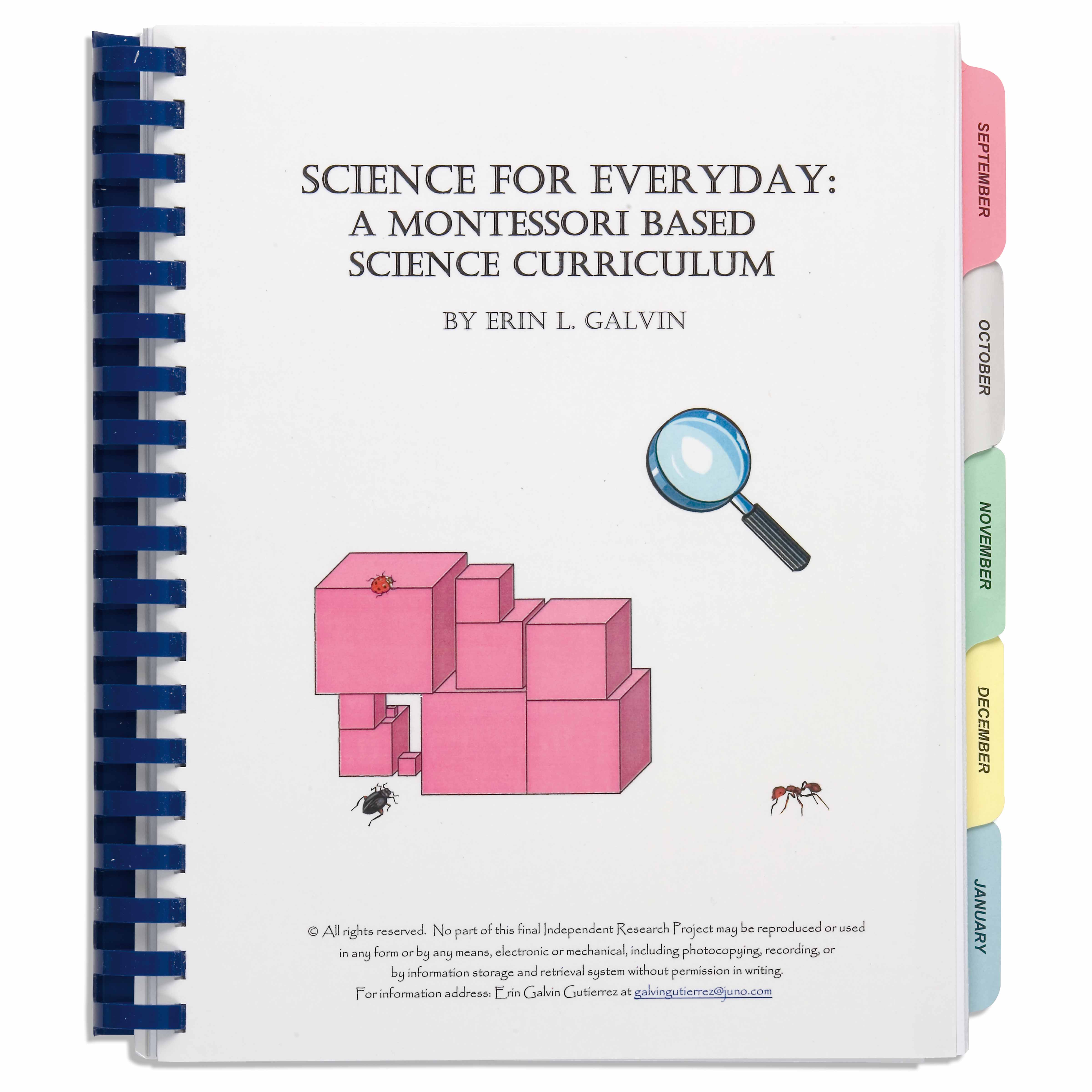 This comprehensive Montessori-based science curriculum provides a structured approach to introducing scientific concepts through hands-on exploration and observation. Organized by month with color-coded dividers, it offers age-appropriate experiments and activities that connect science to everyday experiences, supporting the child's natural curiosity about the physical world.