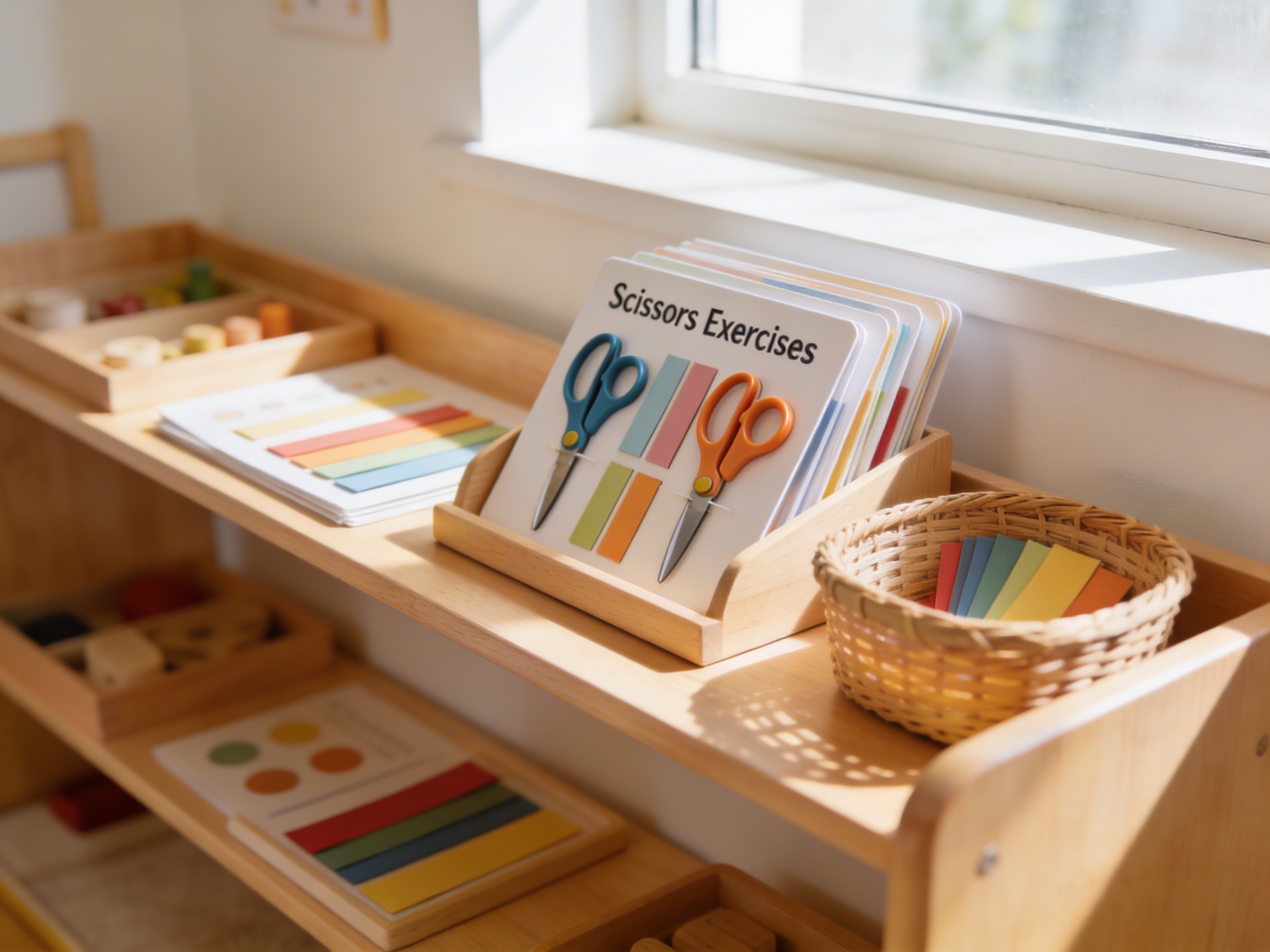 The Scissors Exercises is a Educational Materials Montessori material designed for children aged 3-6, crafted by Nienhuis Montessori to AMI standards.