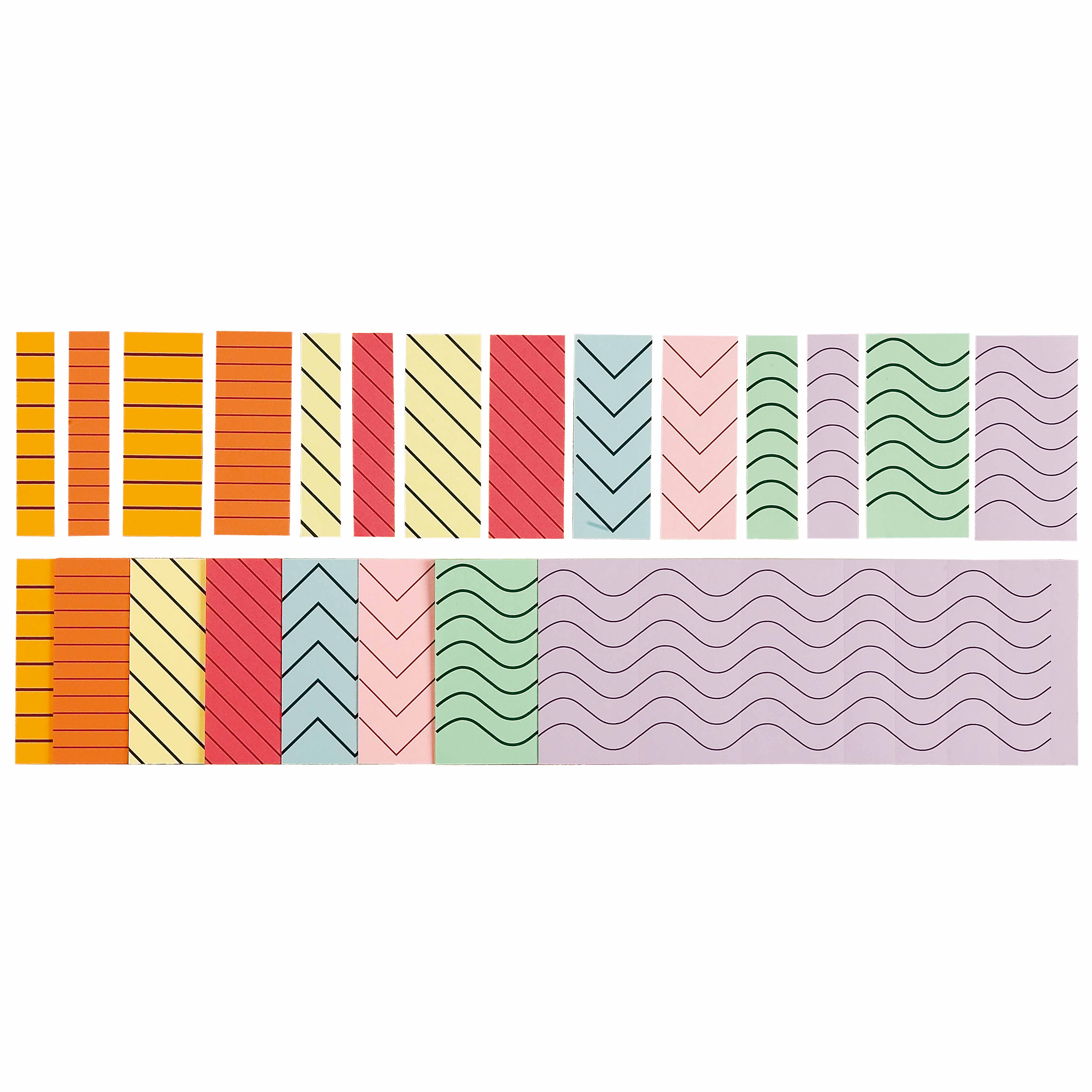 These progressive scissor exercises provide structured practice for developing cutting skills through carefully designed patterns. The set includes multiple paper strips featuring lines of increasing complexity—from simple horizontal cuts to challenging wavy and zigzag patterns. Each colorful strip guides children through precise movements that strengthen hand muscles and refine coordination essential for writing preparation.