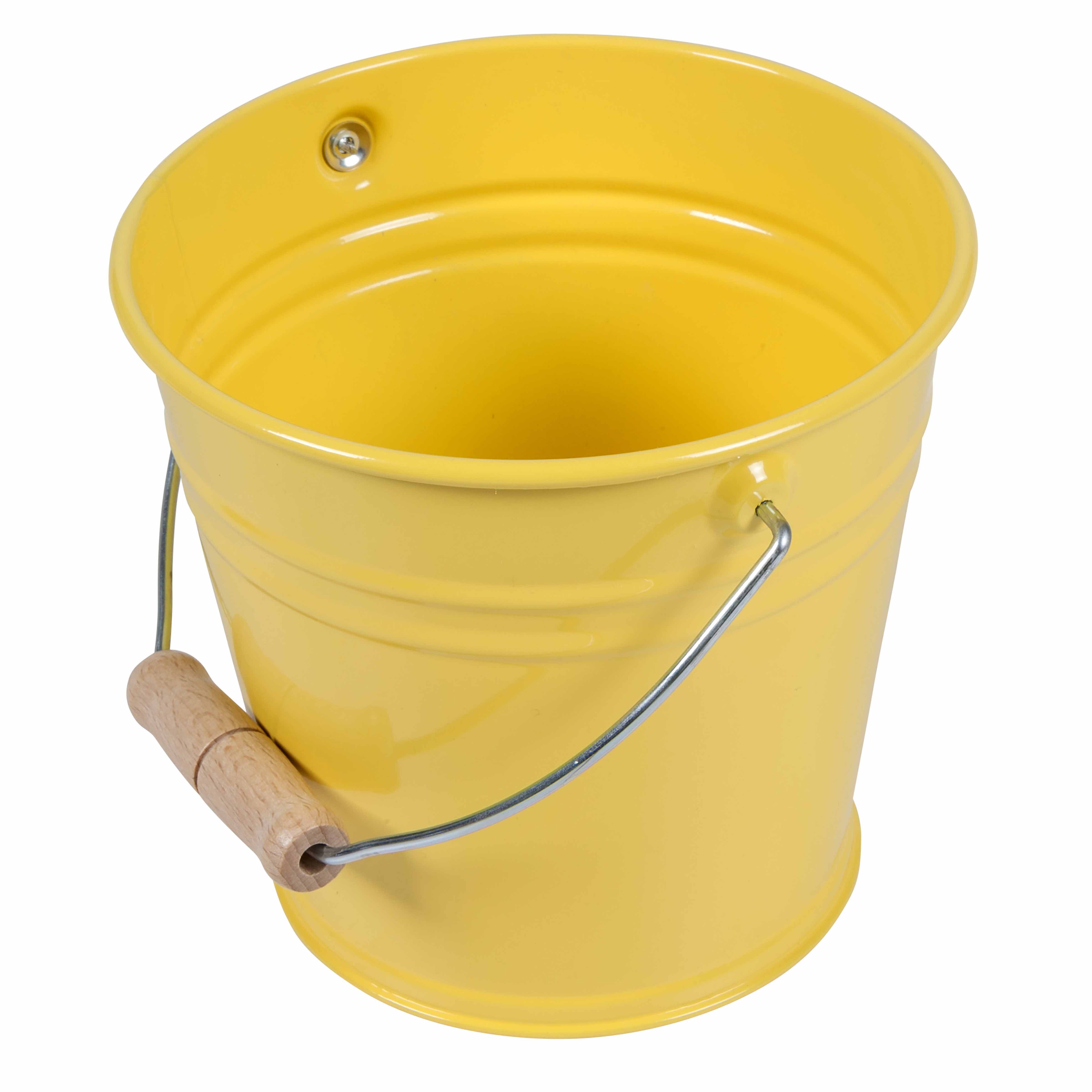 This sturdy yellow metal bucket with wooden handle grip provides authentic practical life experiences for young children. The child-sized proportions and reinforced construction support water carrying, sand play, and cleaning activities that develop coordination, strength, and independence. The bright yellow color adds visual appeal while the ridged design ensures durability for daily classroom use.