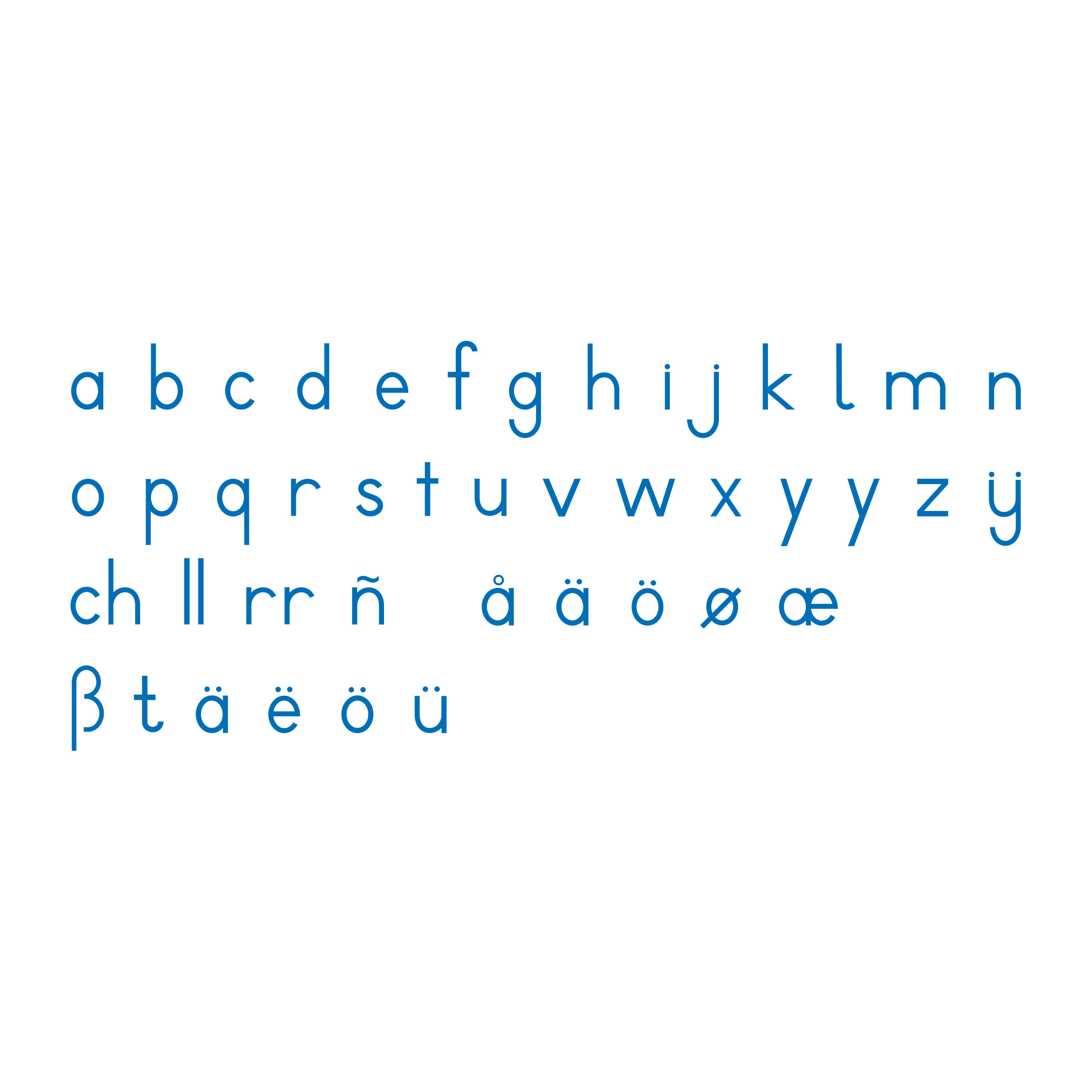 The Small Movable Alphabet: International Print - Blue is a Language Montessori material designed for children aged 3-6, crafted by Nienhuis Montessori to AMI standards.