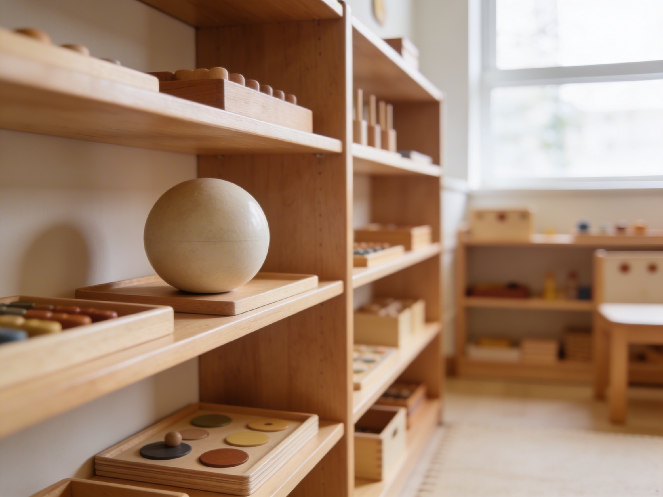 “Connect sphere work to earlier sensorial experiences with geometric solids cabinet”
