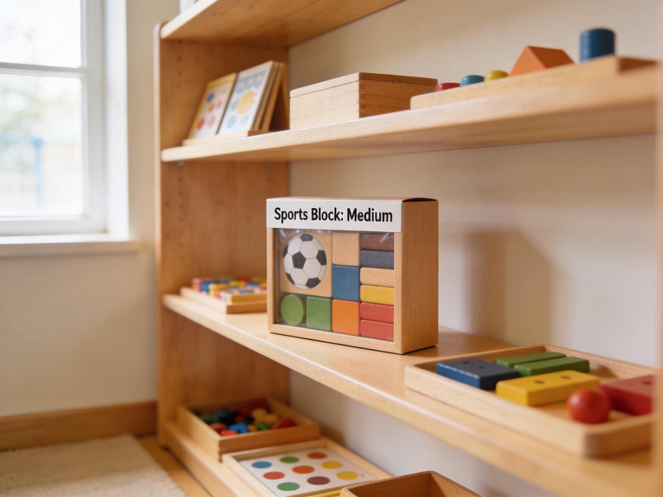 The Sports Block: Medium is a Educational Materials Montessori material designed for children aged 3-6, crafted by Nienhuis Montessori to AMI standards.