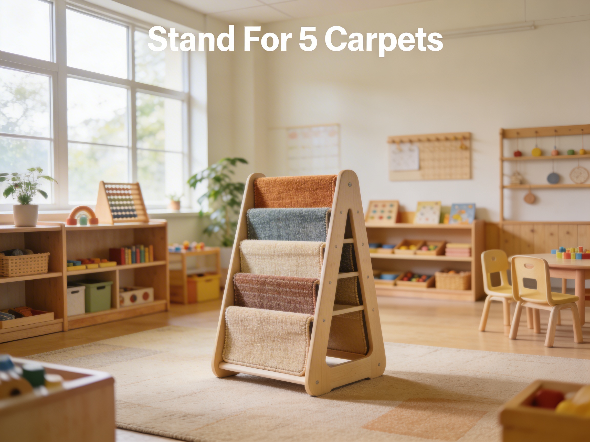 The Stand For 5 Carpets serves as an essential organizational element in the Montessori classroom, creating a designated home for work mats that children use to define their personal workspace. This vertical storage rack with its open-front laminated plywood construction makes each carpet visible and accessible, eliminating barriers between the child and their choice of work surface. By providing organized vertical storage for up to five carpets, the stand enables children to independently select, carry, and return their mat without adult assistance. The carpet stand's accessible design respects the child's developing sense of order during the sensitive period for organization, typically emerging around age three. When children can see all five carpets arranged vertically, they develop decision-making skills through daily mat selection. The stand's sturdy laminated plywood structure maintains the carpets in ready-to-use condition, preventing the frustration of tangled or wrinkled mats that might interrupt concentration.