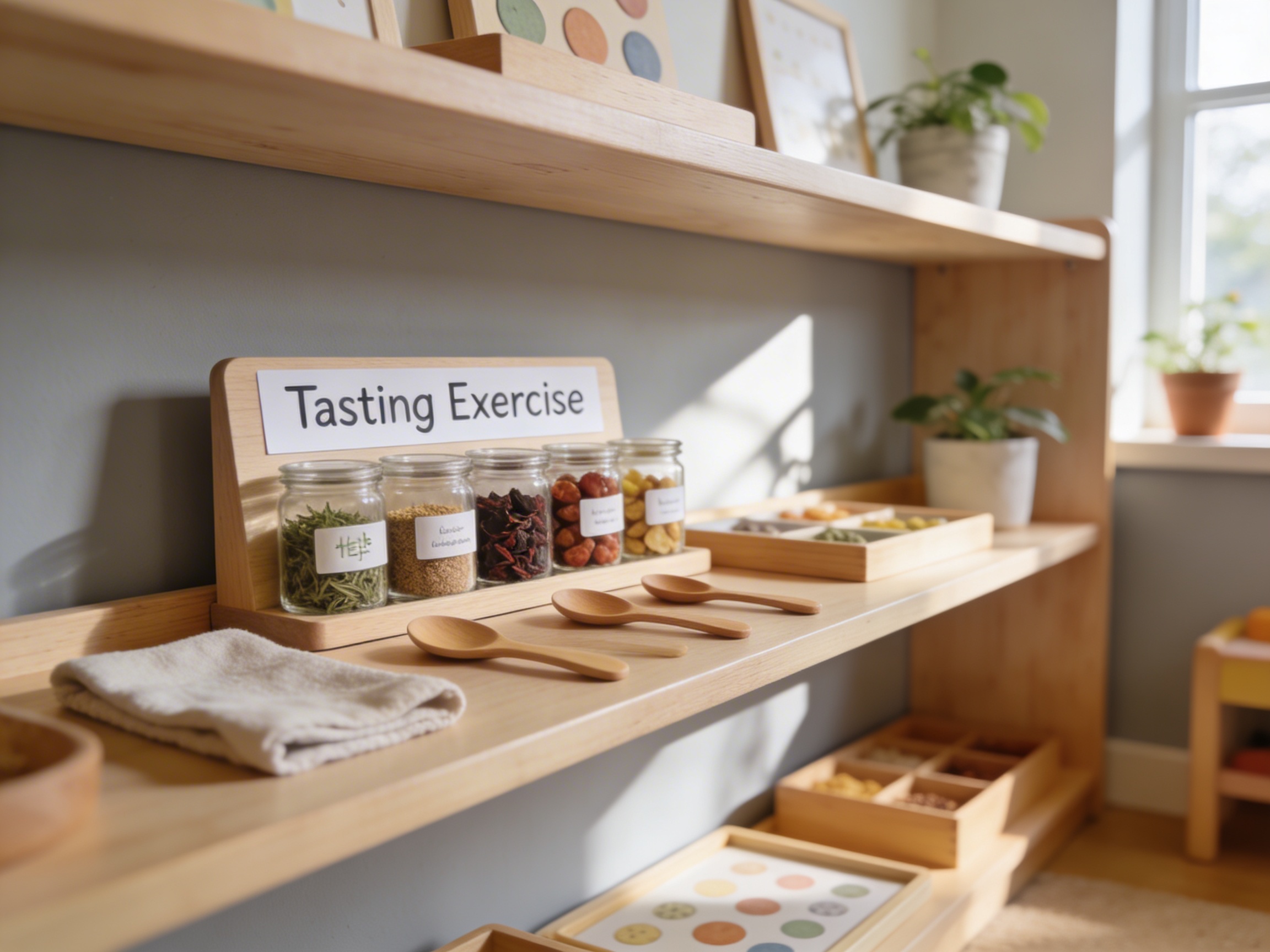 The Tasting Exercise is a Educational Materials Montessori material designed for children aged 3-6, crafted by Nienhuis Montessori to AMI standards.